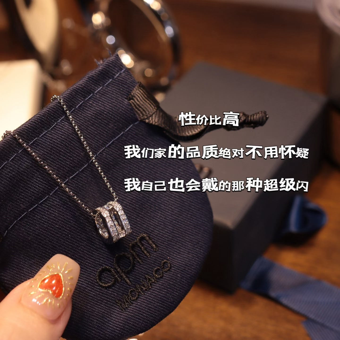 都做了固色处理,水晶,锆钻,珍珠,都是APM原材料。