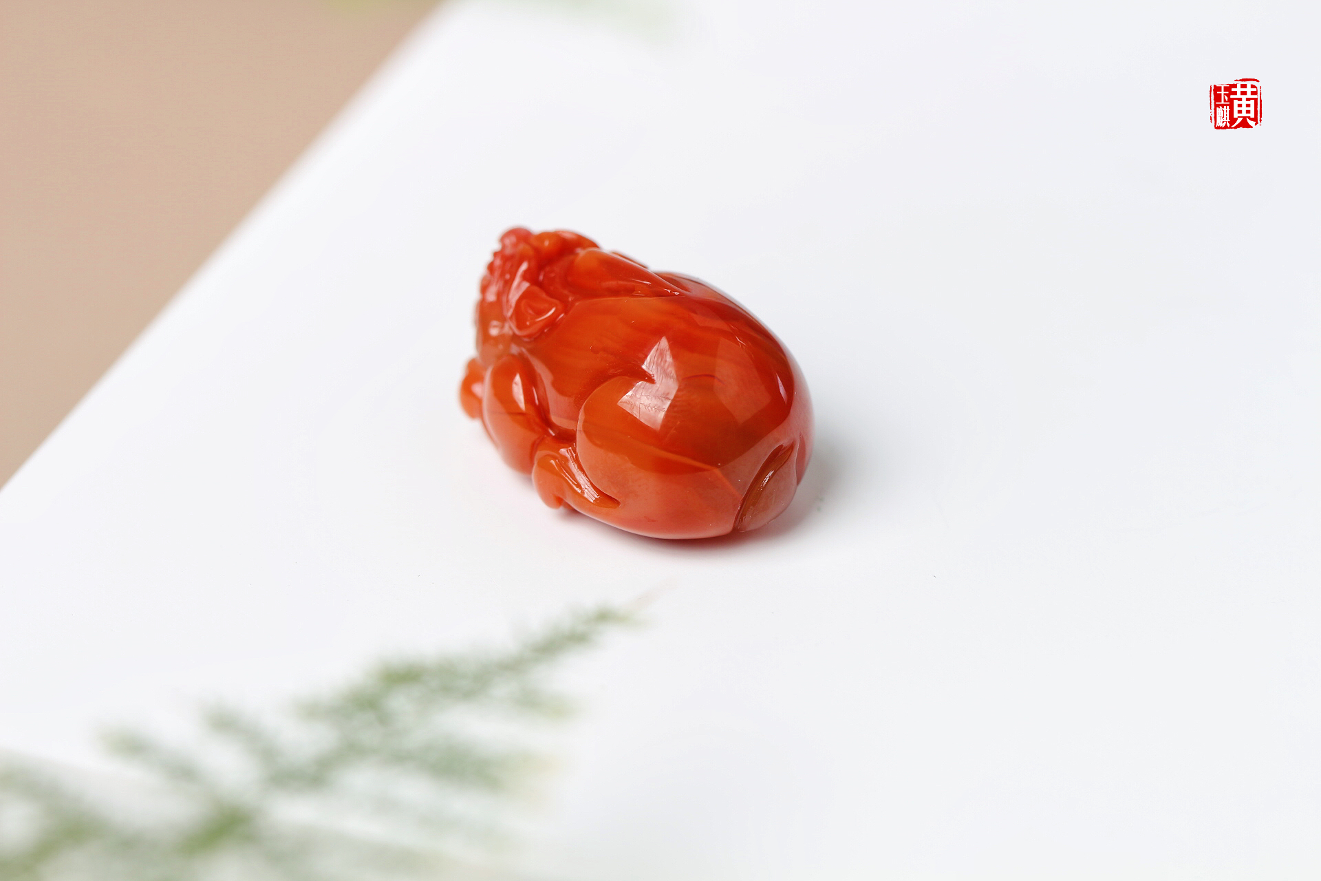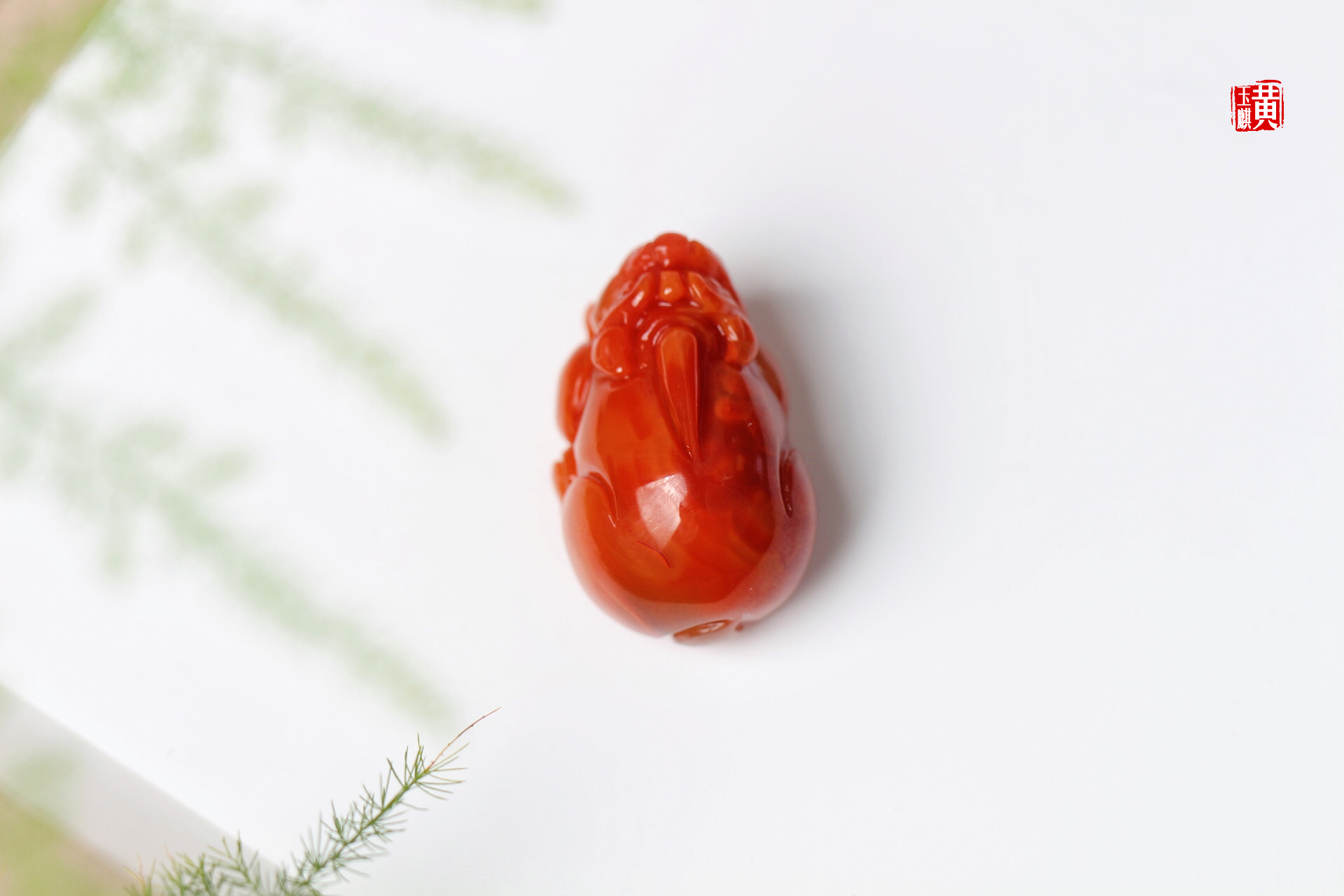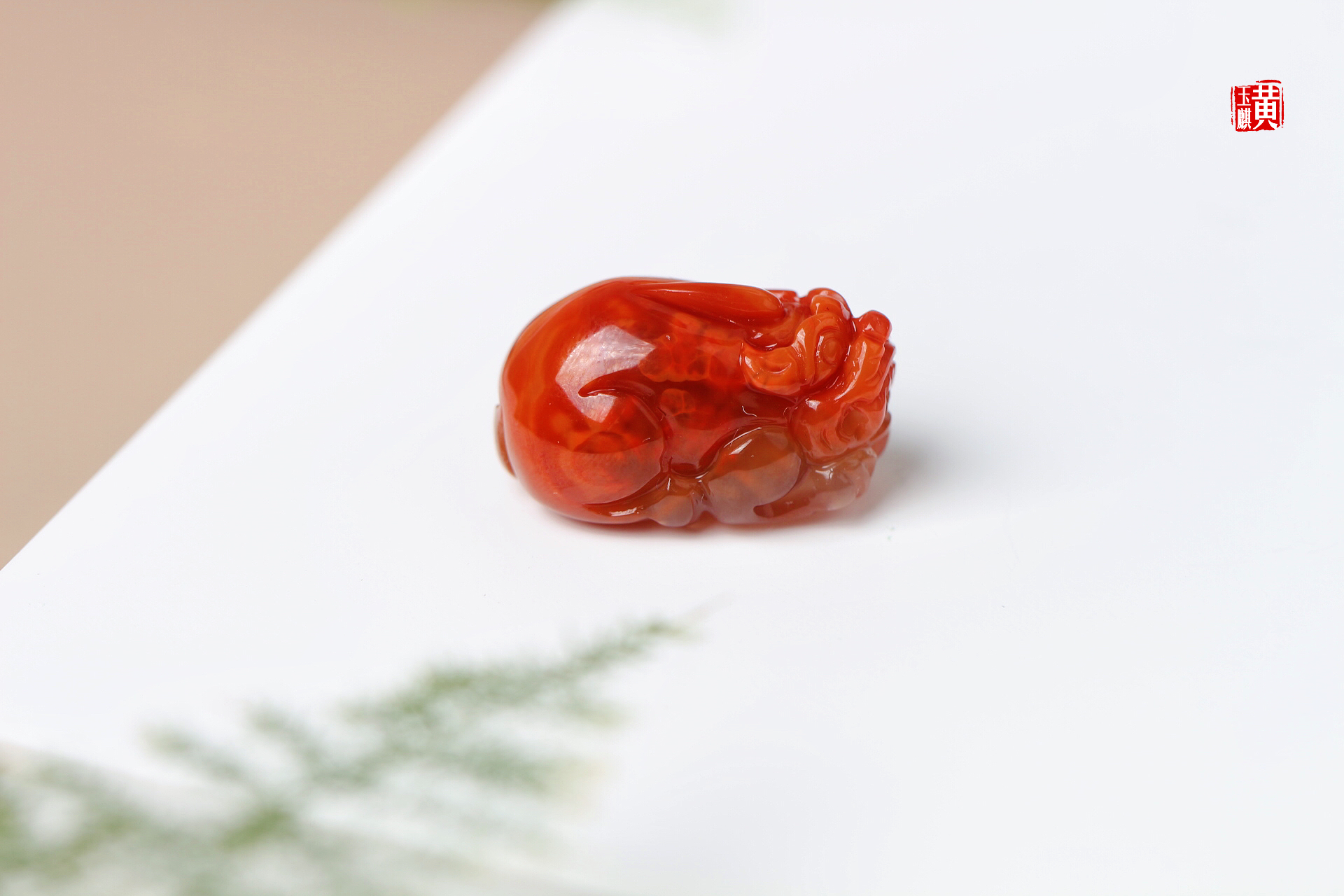 南红招财貔貅吊坠,色泽红润,鲜艳明亮,貔貅威武霸气,寓意招财纳福,鸿运当头,好运相伴。