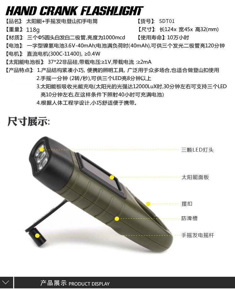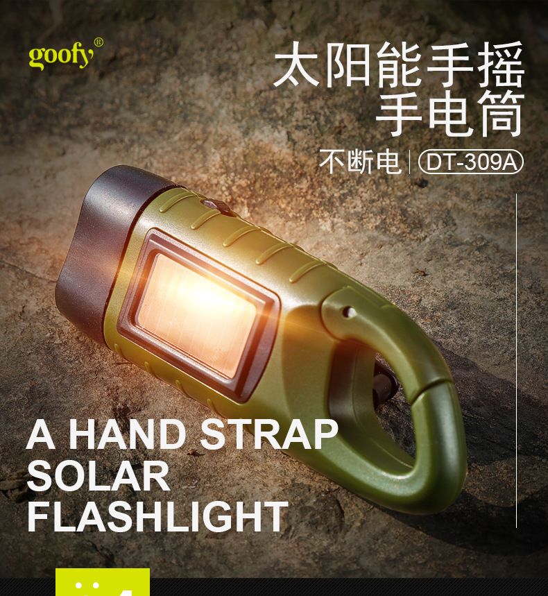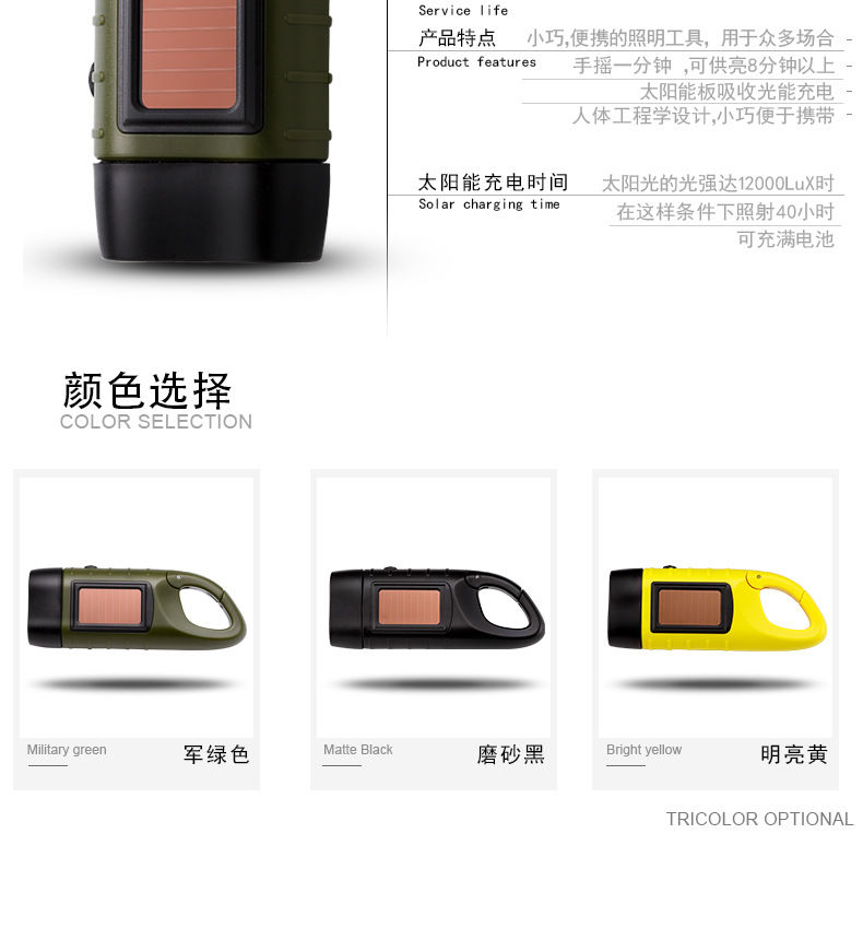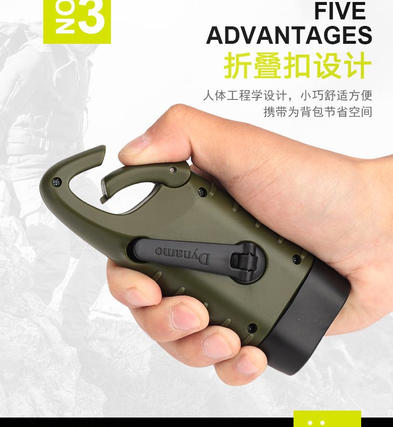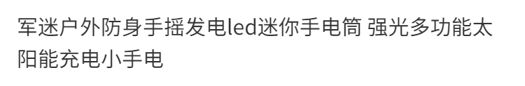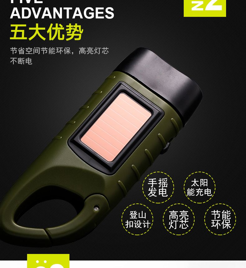 军迷户外防身手摇发电led迷你手电筒 强光多功能太阳能充电小手电