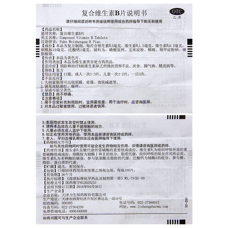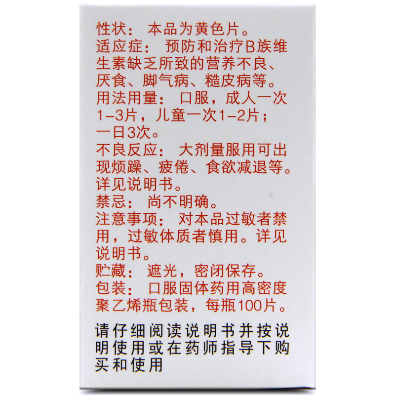 力生复合维生素B片100片/盒 B族维生素缺乏 营养不良厌食脚气糙皮