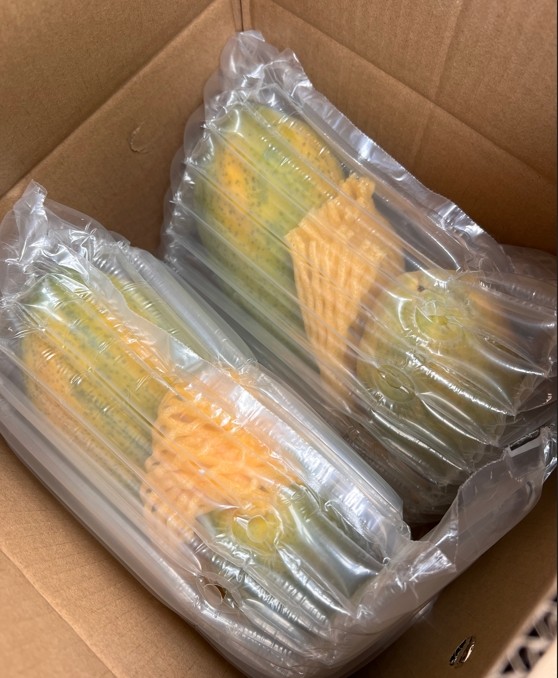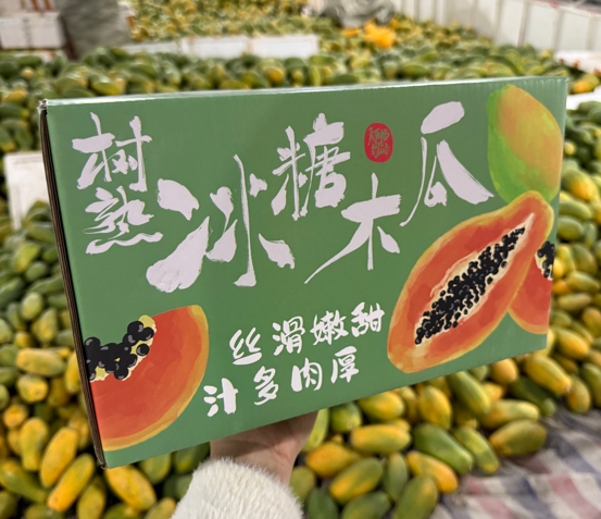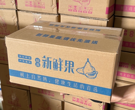 约1.5斤重的精品大木瓜,逐个用气泡柱保护好,装箱送到家。