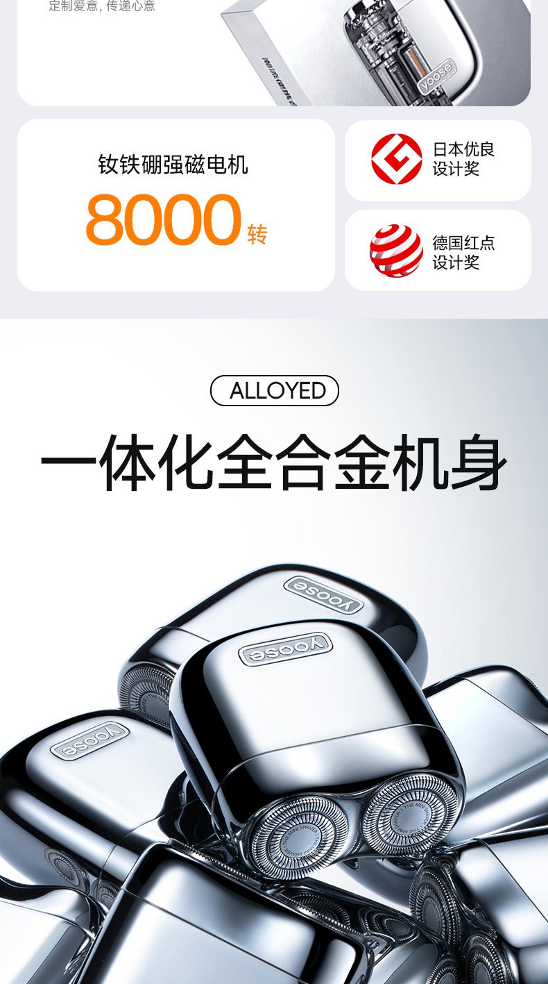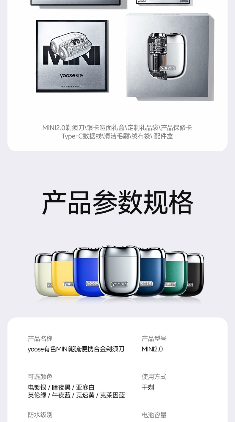 有色(yoose)【王一博推荐】剃须刀便携款合金电动刮胡刀男士礼盒 MINI2.0