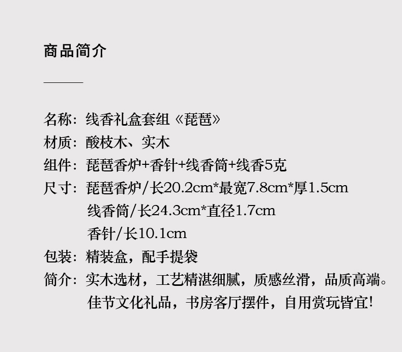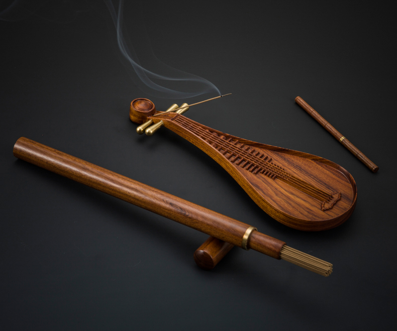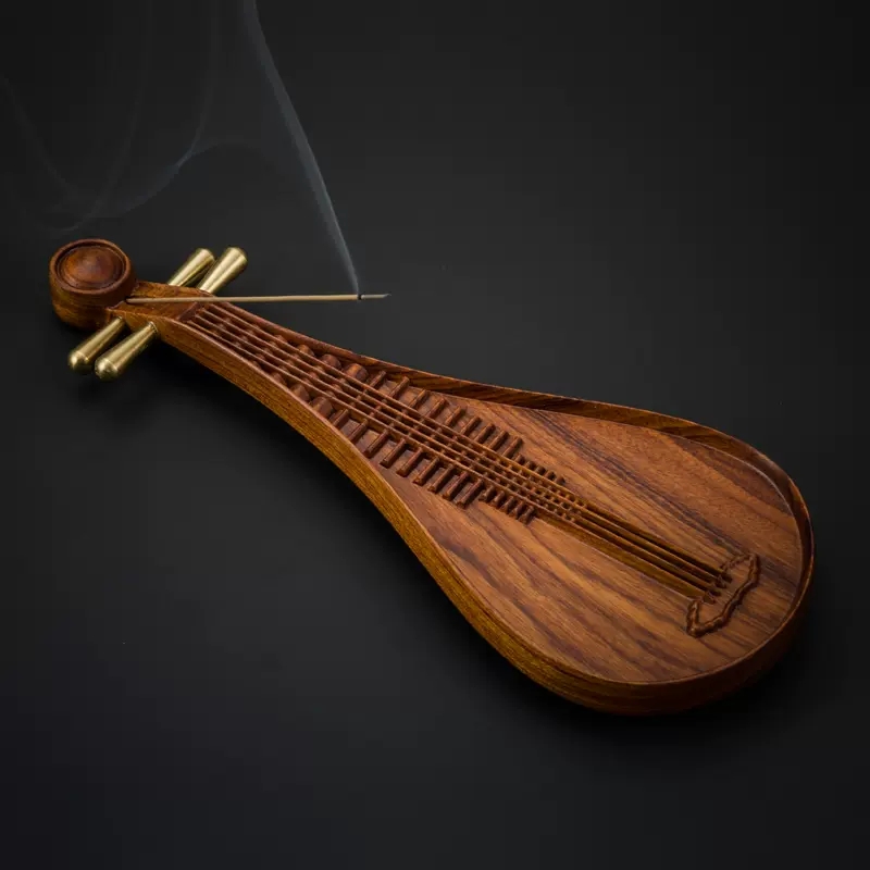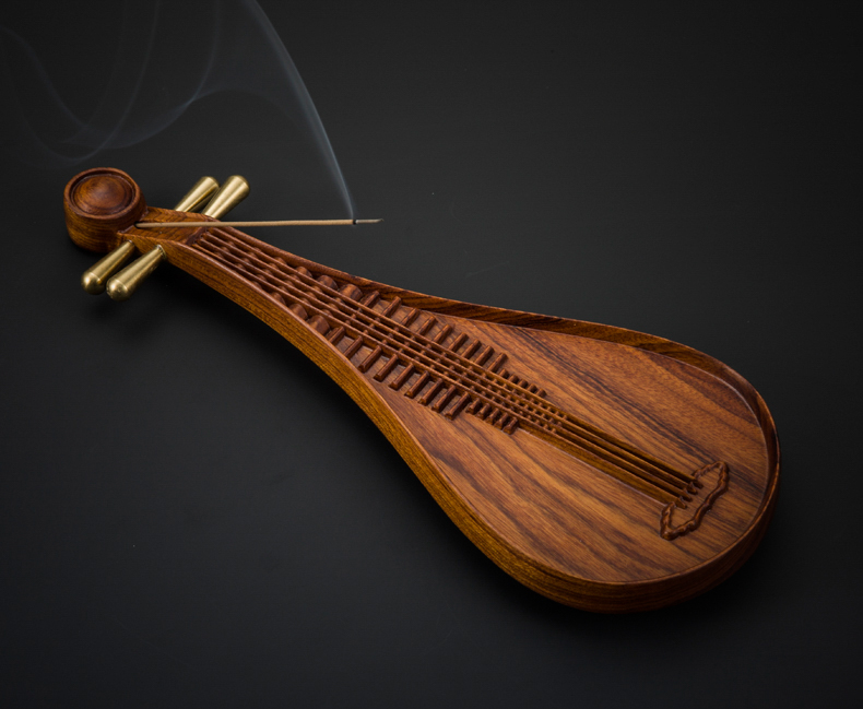 精工酸枝木实木质线香炉礼盒套组琵琶古琴线香插熏香薰炉沉香礼品