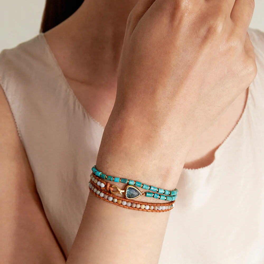 北京仓|Chan Luu-RAHEL-绿松石 多层缠绕皮绳 手链[美国设计师]