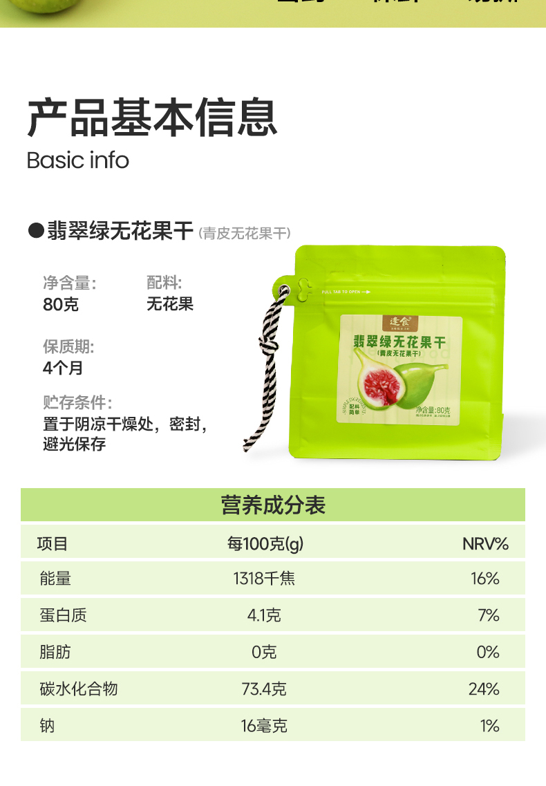 优选|翡翠绿无花果干 鲜果现制不加糖 清甜软糯 6斤鲜果约1斤果干 80g*2袋