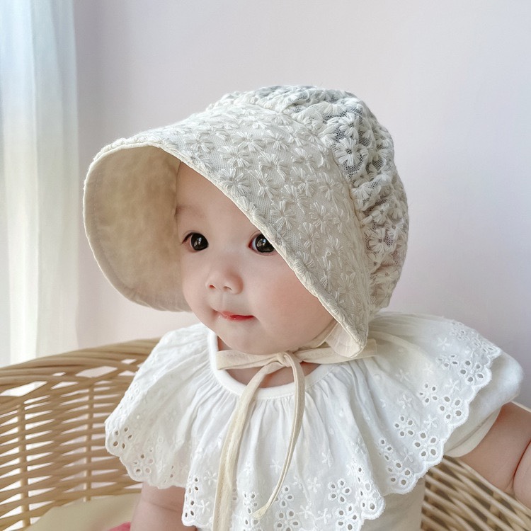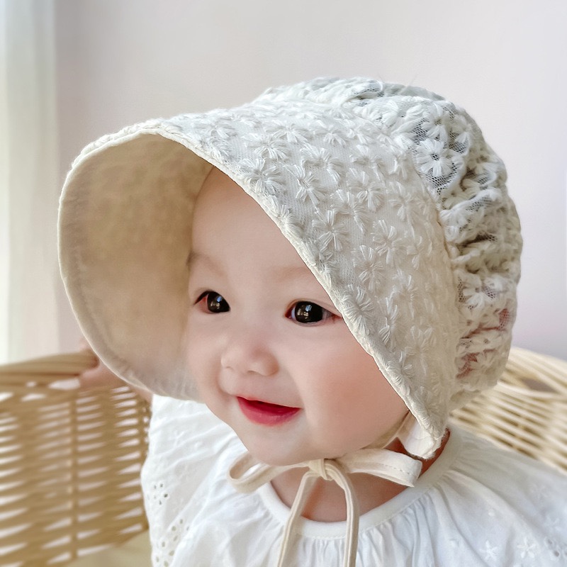 【透气蕾丝公主宫廷帽】ins婴儿帽子春秋薄款夏季女宝宝大檐防晒遮阳