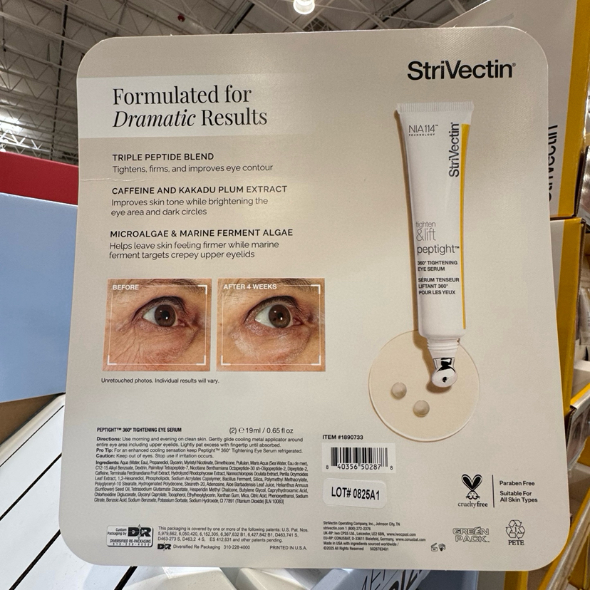 Strivectin眼霜特价320元🉐📣自带金属按摩头款,strivectin紧致抗皱提拉去浮肿眼霜19ml+19ml超值套装包税包邮到手了🔥最畅销的眼部精华素,眼部效果显著,现在已升级为利用三种独特肽的力量,明显收紧,紧致和提亮整个眼部区域。这款轻盈、可分层的配方在眨眼间吸收,具有不粘腻的感觉,可沿上眼和下眼,以及鱼尾纹和眼睑呈现尺寸效果。由冷却涂抹器支撑,可轻柔按摩和去除浮肿,使这款娇嫩的皮肤焕发活力!