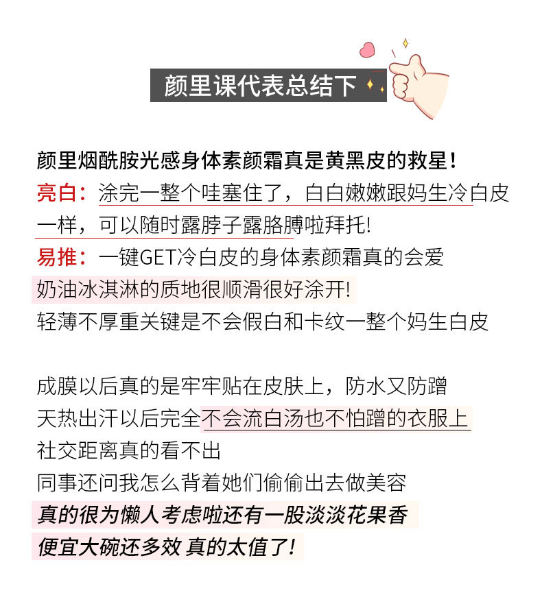 【福利❗️19.9抢3瓶🔥】提亮 + 保湿二合一,轻松改善肤色不均,添加烟酰胺,质地像奶油冰淇淋,一抹提亮不拔干,保湿不黏腻裸妆神器全身提亮身体乳懒人霜QQ