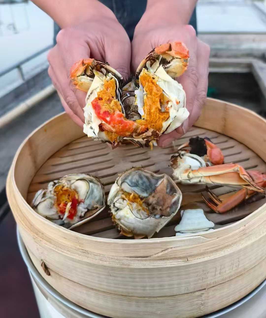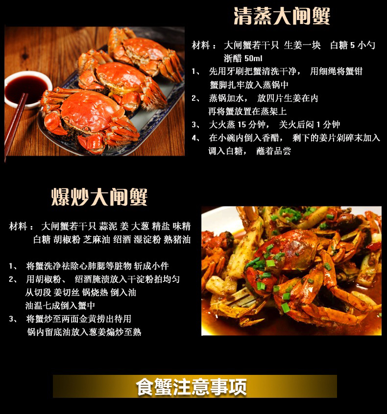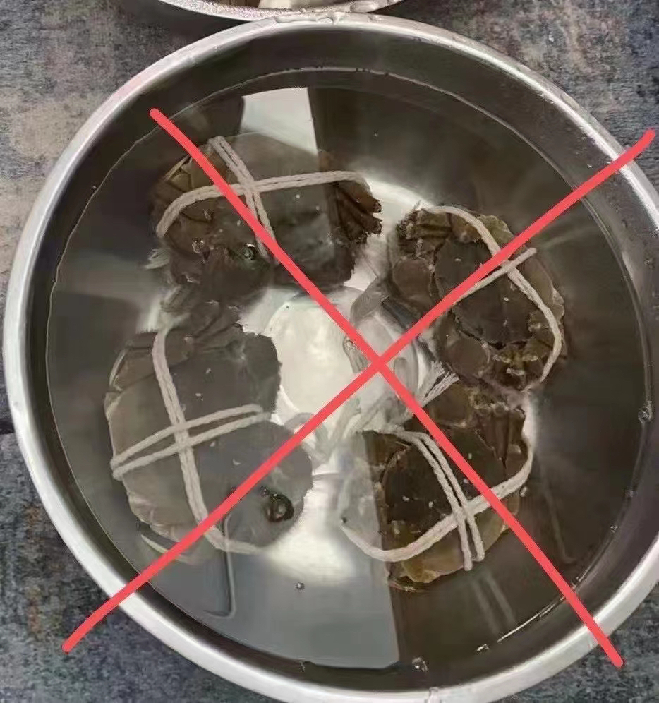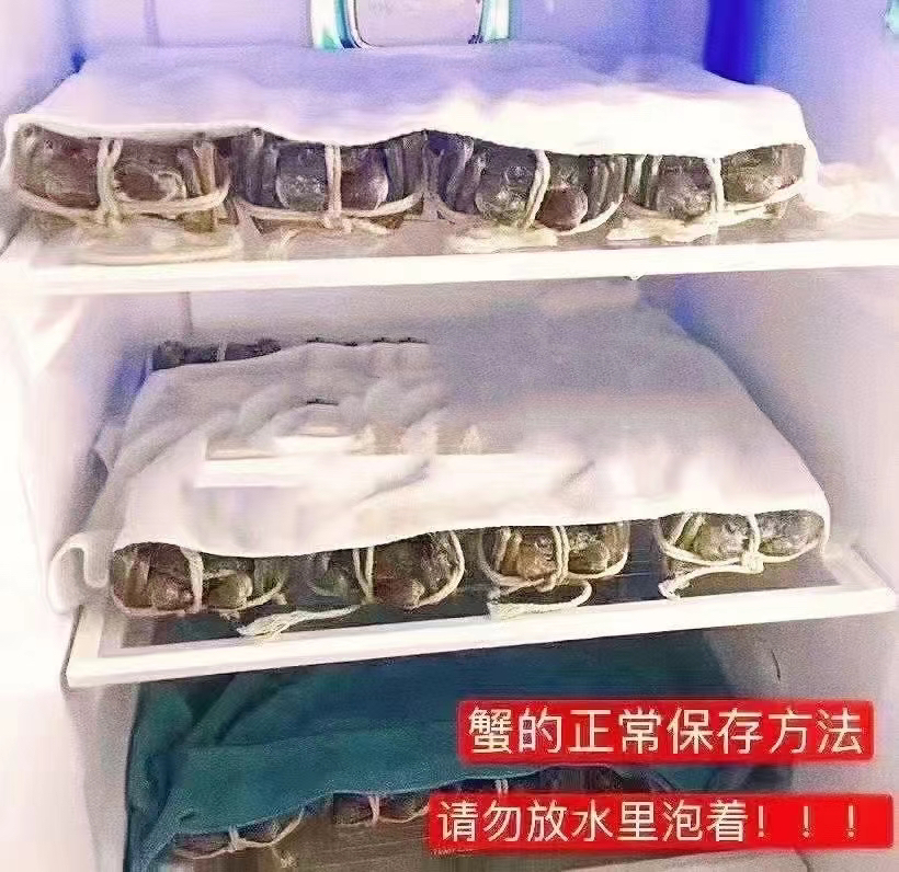 🦀大闸蟹的保存方法:收到活的大闸蟹后,如果一下子吃不完,那么您得要注意保存。最好把捆绑好后的大闸蟹 直接放入冰箱保鲜室冷藏( 注意:不是冷冻 ) ,温度控制在 5 摄氏度左右,用拧干的湿毛巾盖住即可;切记:如千万不要泡水里,不然螃蟹会死 。冰箱保鲜正常情况下可以保存 3-4 天,不过保存时间太长螃蟹会瘦一些, 3 天内食用不影响口感!