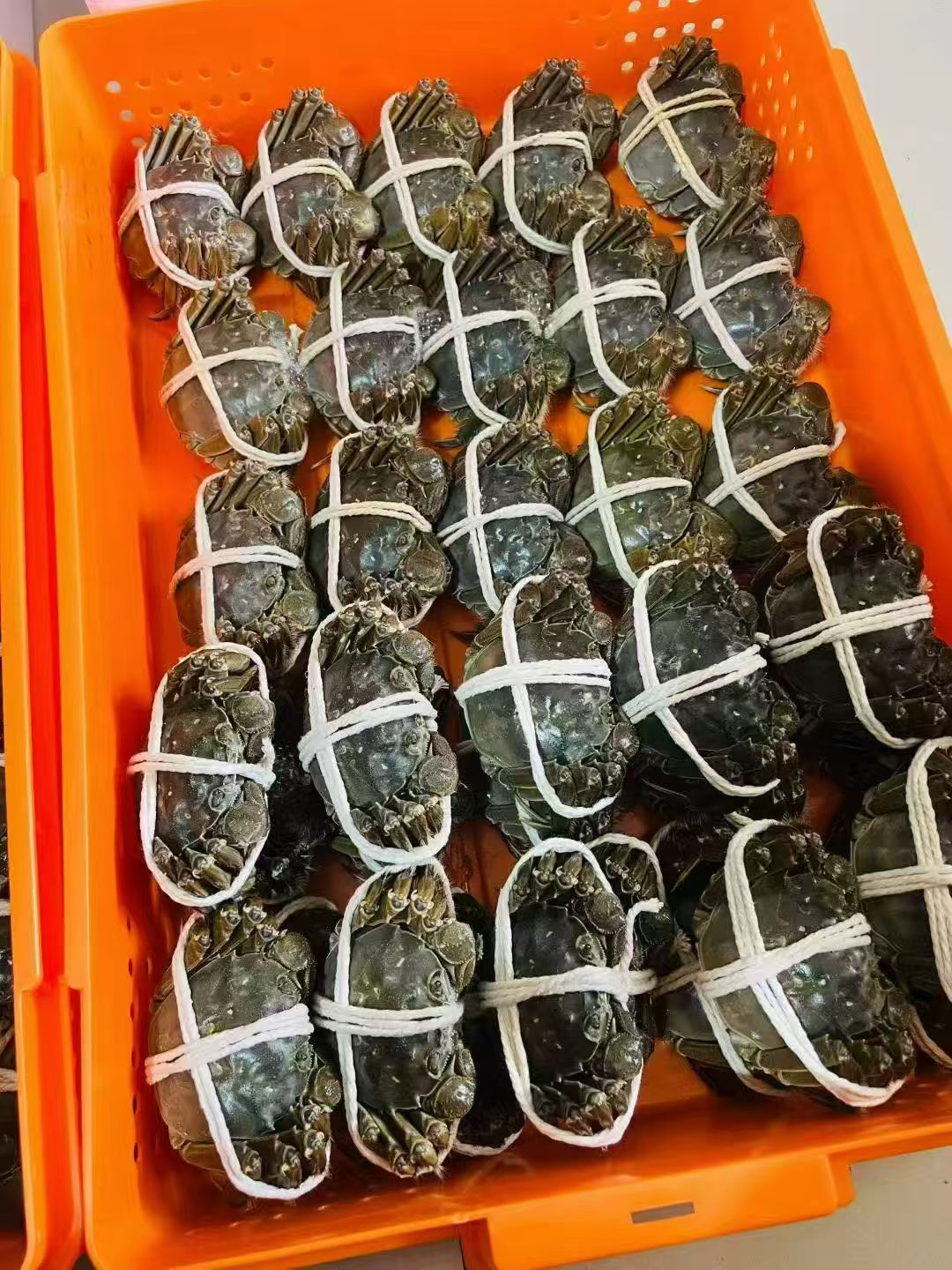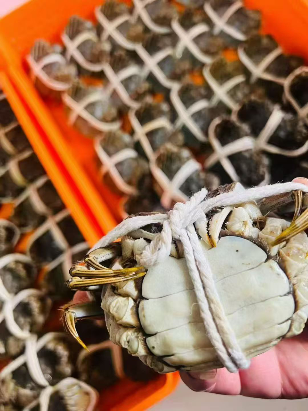 🦀大闸蟹的保存方法:收到活的大闸蟹后,如果一下子吃不完,那么您得要注意保存。九、十月份,最好把捆绑好后的大闸蟹 直接放入冰箱保鲜室冷藏( 注意:不是冷冻 ) ,温度控制在 5 摄氏度左右,用拧干的湿毛巾盖住即可;切记:如千万不要泡水里,不然螃蟹会死 。冰箱保鲜正常情况下可以保存 3-4 天,不过保存时间太长螃蟹会瘦一些, 3 天内食用不影响口感!