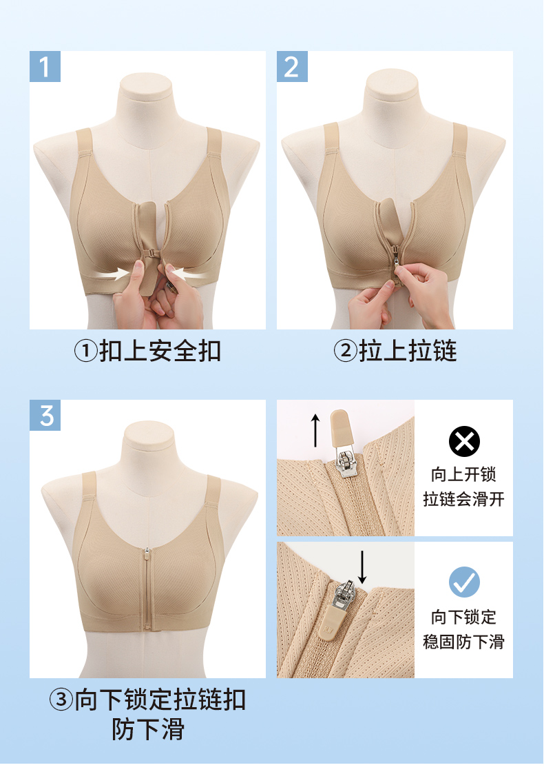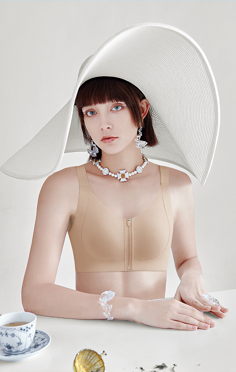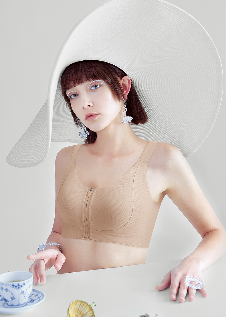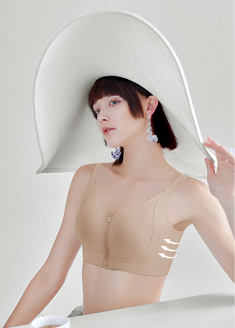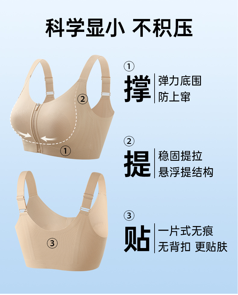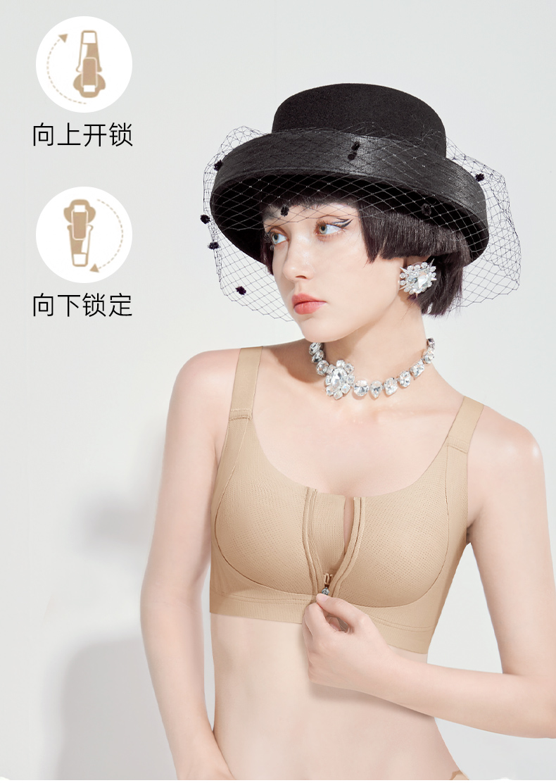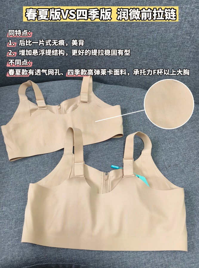 💗【一拉薄2.0 B-F杯】【洞洞春夏版前拉链】【一片式无痕侧翼】润微高定莱卡面料、模拟运动版型前拉链设计F杯也稳大胸显小兔耳杯文胸 提拉曼妙【提拉系列】