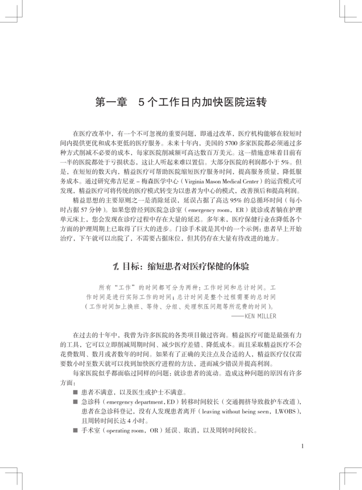 本书是一本医院管理图书,分别从医院运转、患者周转、医院费用等多方面指出医院管理中存在的问题和漏洞,并从数据层面、实际层面、意识层面等多方面多维度分析,给出了一套完整且系统的解决方案,非常便于医院管理者学习并运用于实践,提高其医院管理能力,从而降低医院成本、减少医疗差错,提高患者和医务人员的满意度。为便于管理者在实践中开展工作,本书还提供多种解决问题的工具,尤其是统计工具,其为优化医院管理提供了更多数据和依据,是医院管理者必备参考书。