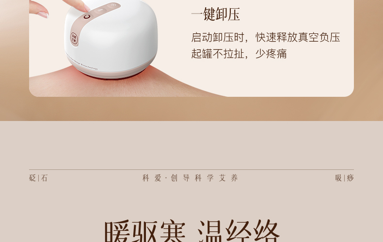 科爱元素砭石吸痧仪,还原古法吸放拔罐,4档吸附力度