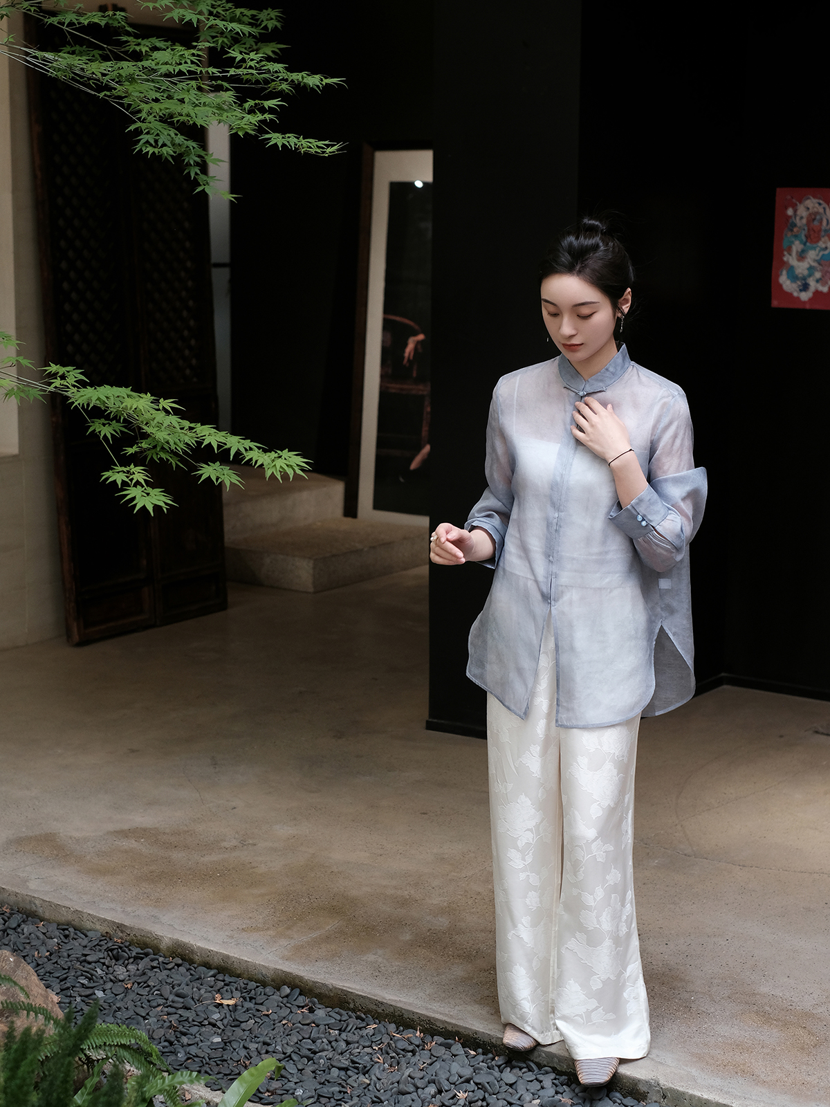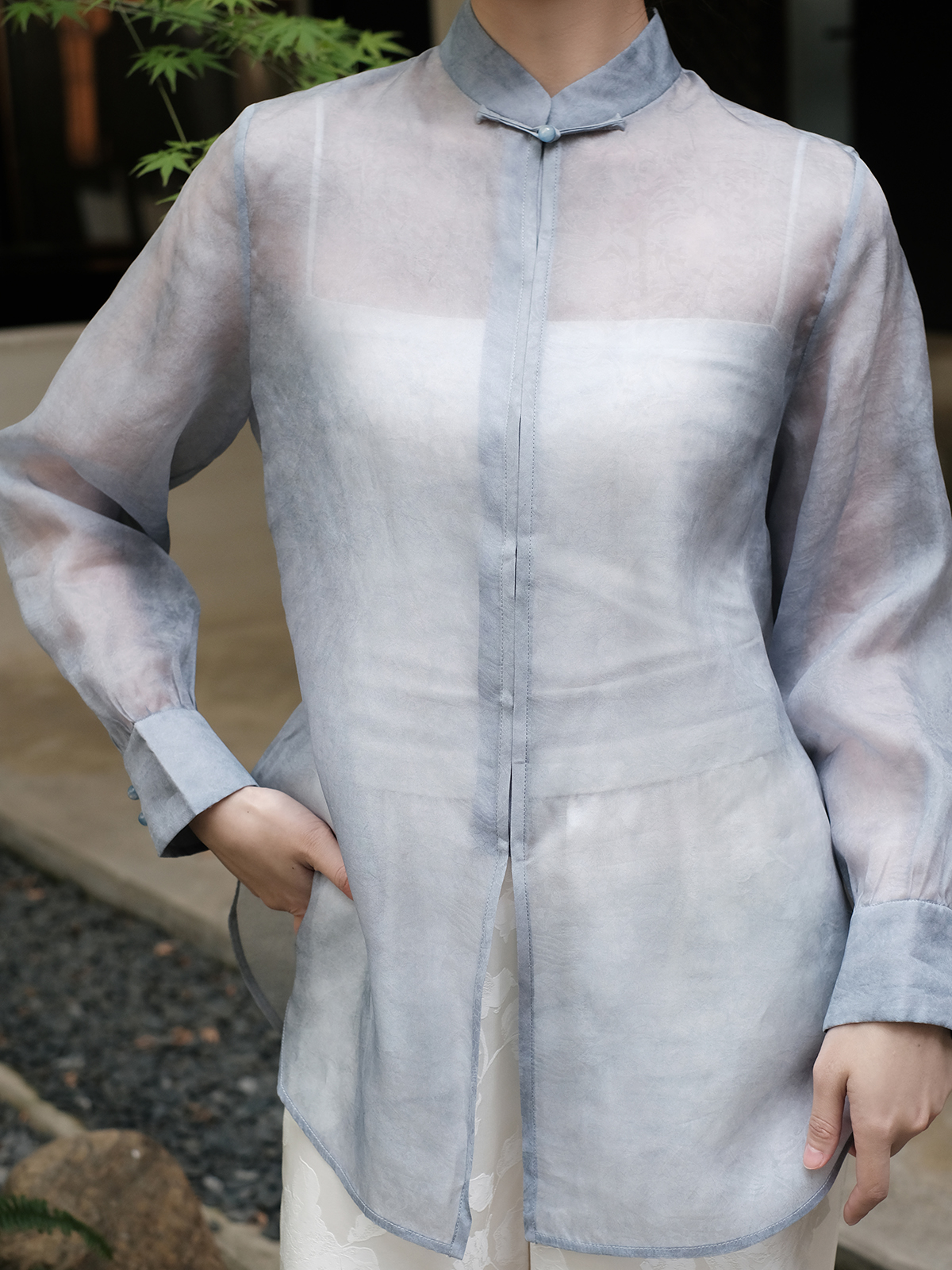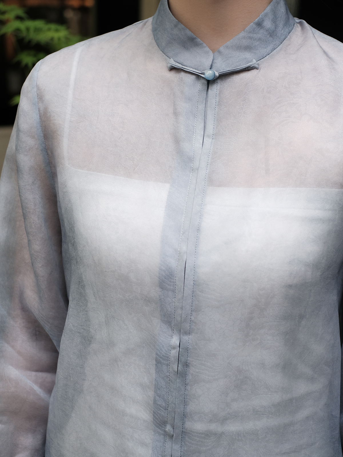 盛唐婧 |手工扎染真丝绡上衣-灰蓝
