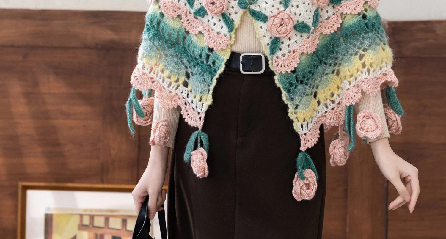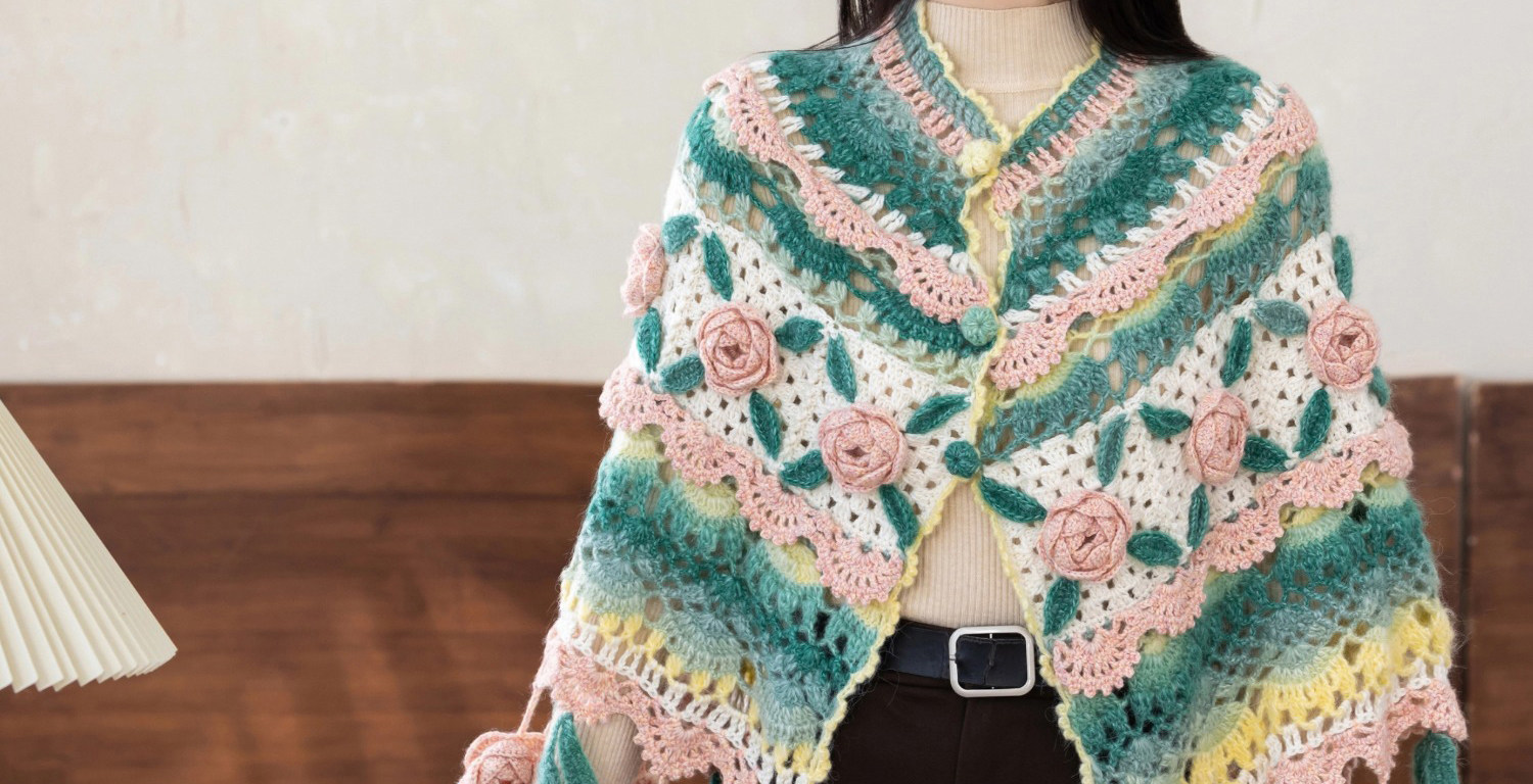 苏苏姐家山茶花多用披肩手工diy钩针编织毛线团材料包