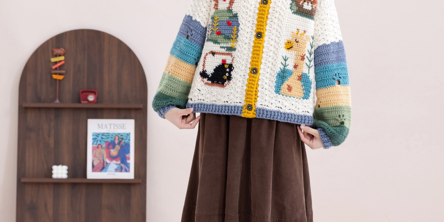 苏苏姐家林悦动物开衫手工diy编织钩针莫兰迪8羊毛毛线团自制材料包预