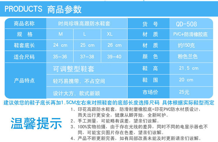 【家居杂物】女款高跟鞋套QD-508 加厚底高跟防雨鞋套防水鞋套可调整型