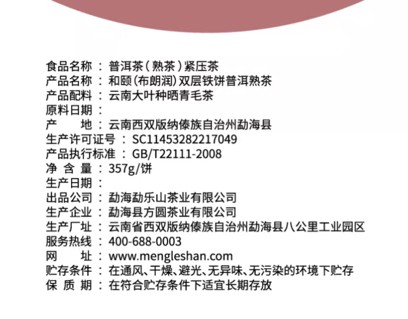 为勐乐山和颐(熟茶)系列里的名山子系列,