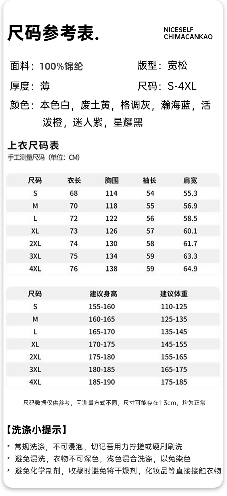3XL:建议 180-185cm 170-190斤
