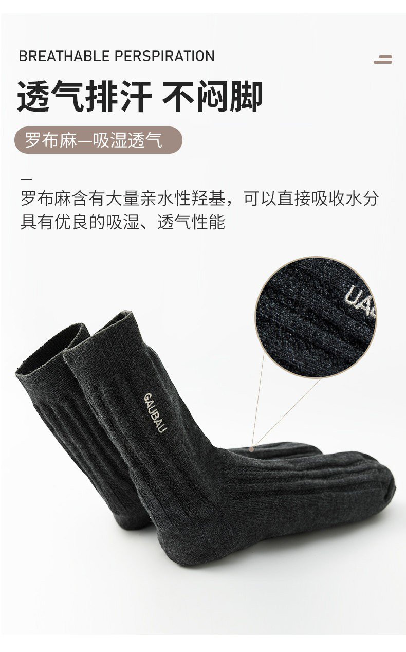男士长袜中筒秋冬罗布麻防臭吸汗透气