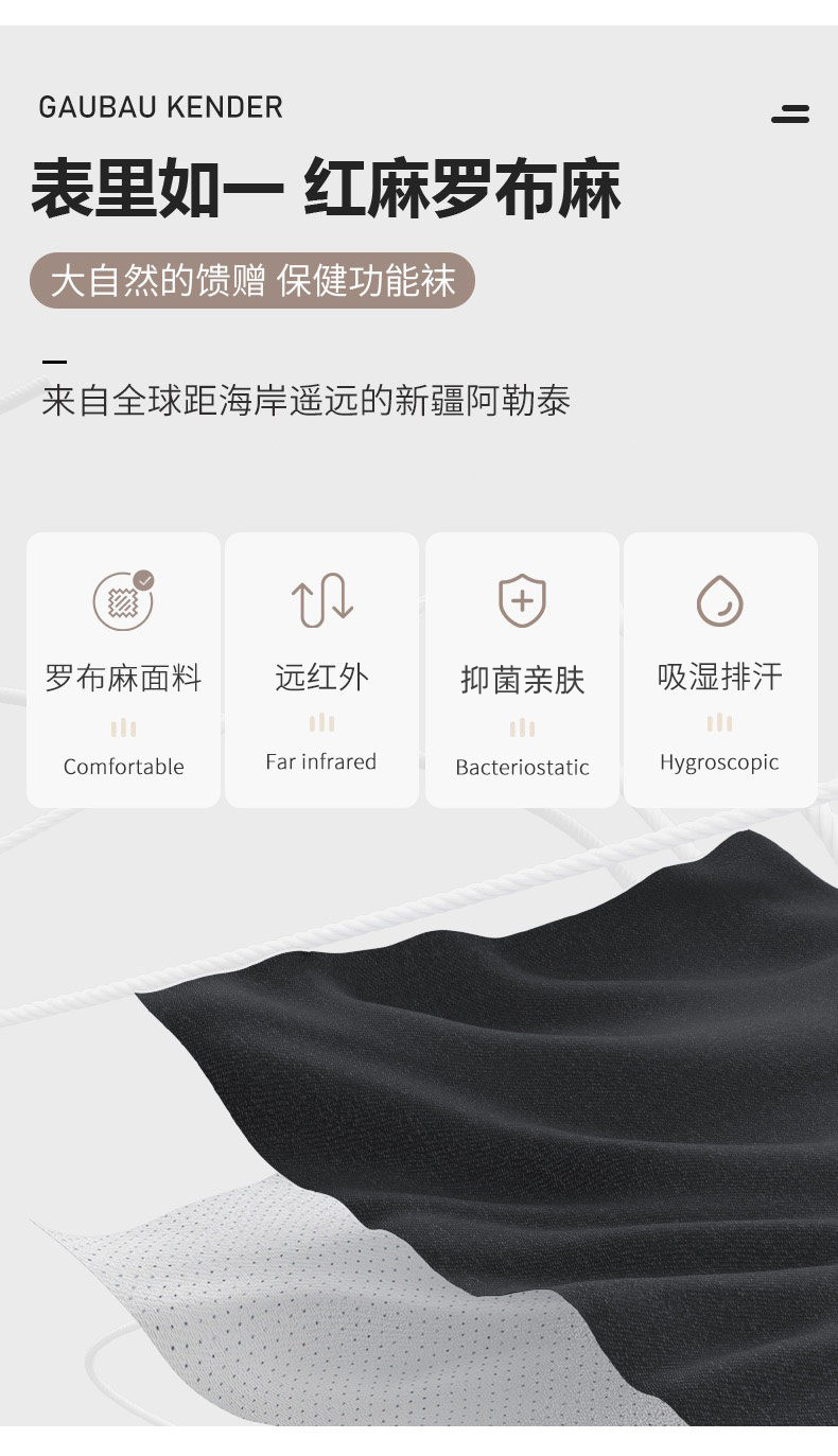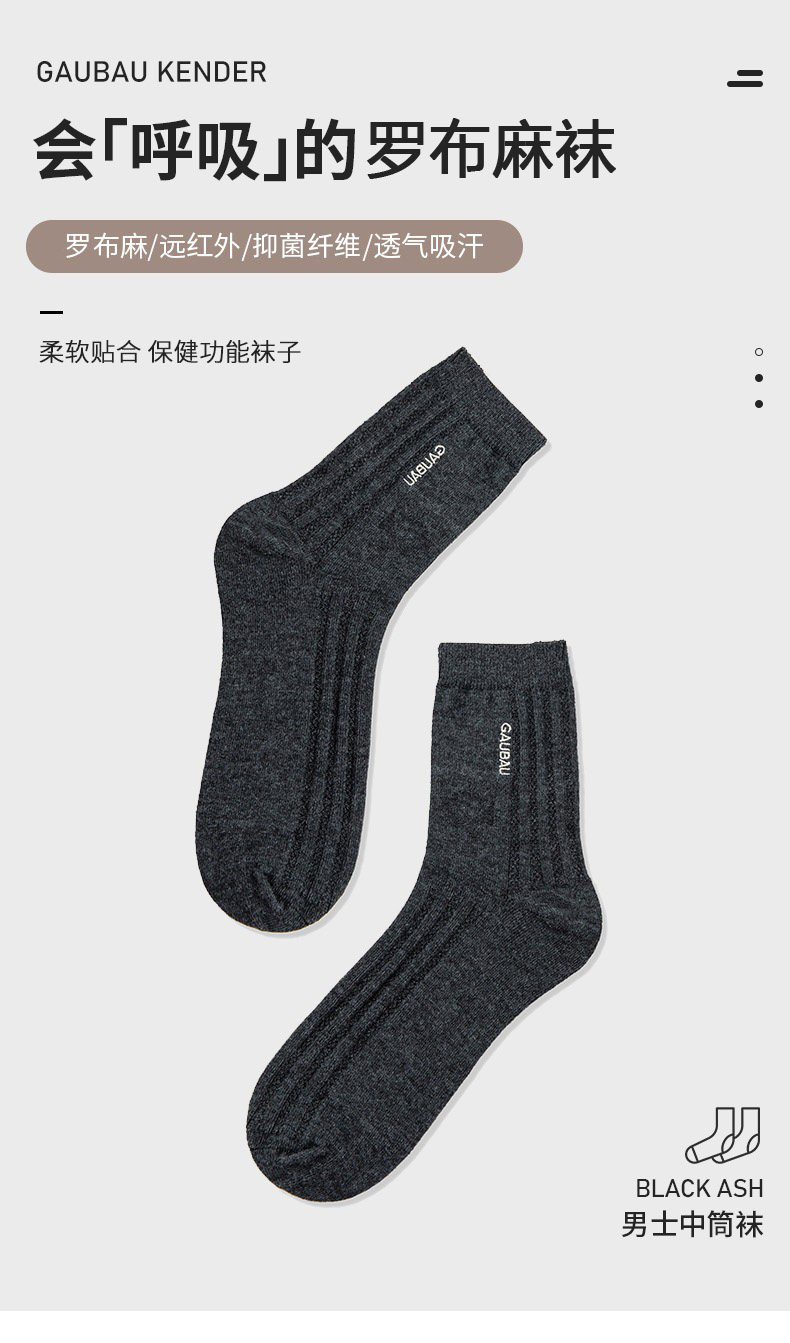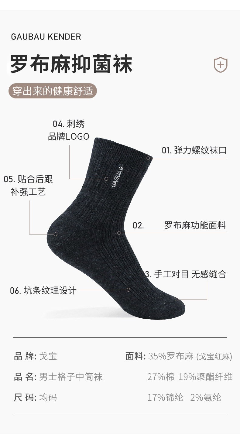 戈宝男士格子中筒袜罗布麻远红外除臭吸湿透气