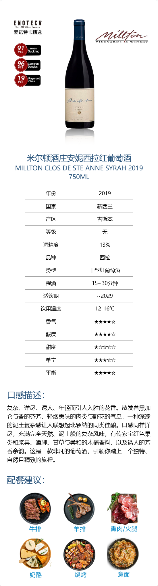 米尔顿酒庄安妮西拉红葡萄酒 2019 750Ml