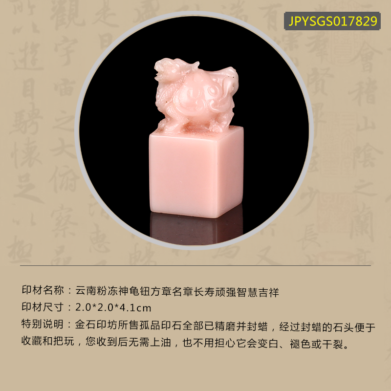 孤品17829云南粉冻神龟钮方章名章长寿顽强智慧吉祥2.0*2.0*4.1cm