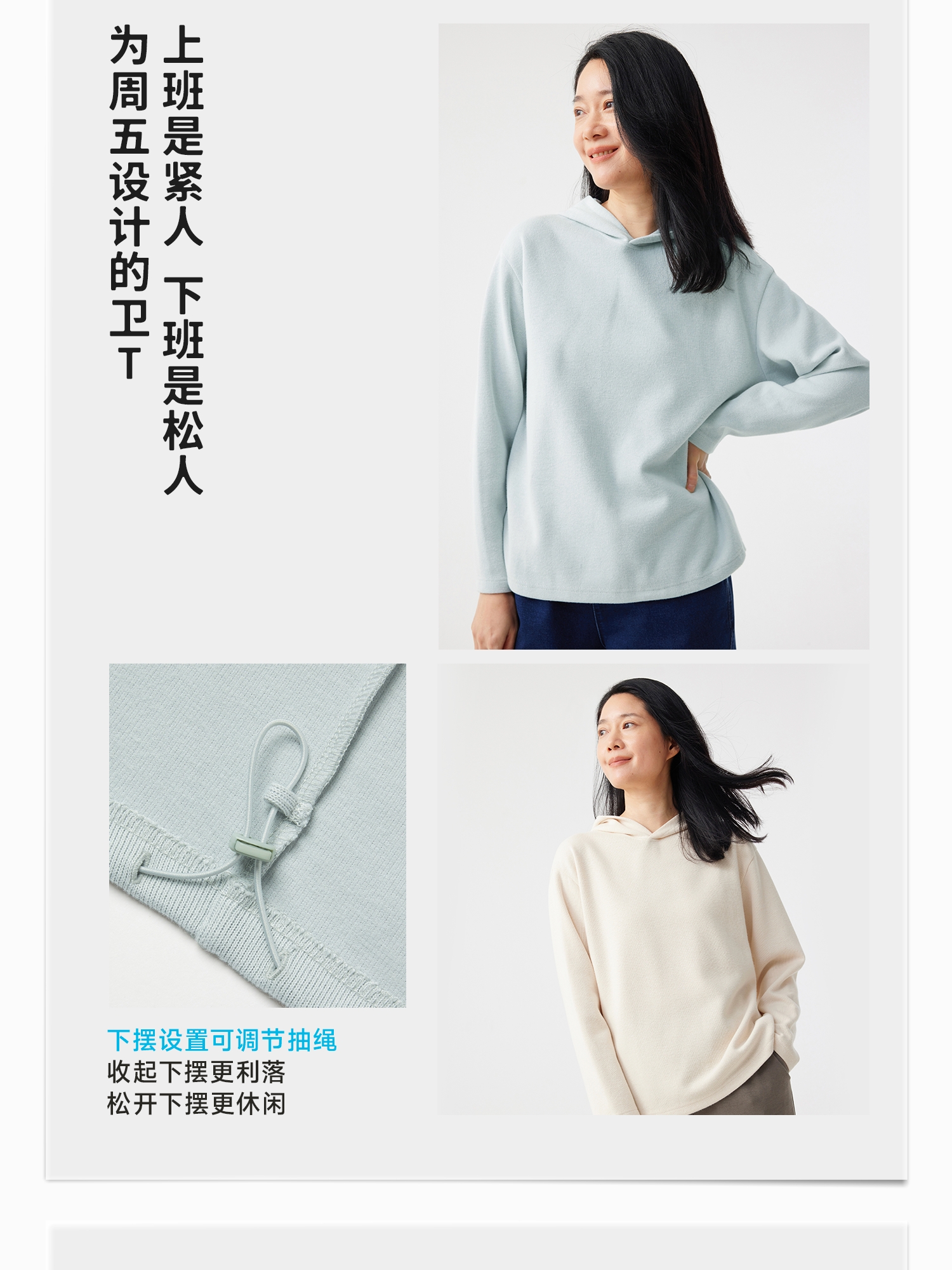 【秋Vol.4】幼岚「坑条卫T」下摆抽绳可调节柔软亲肤24秋季新款女士成人卫衣ZY