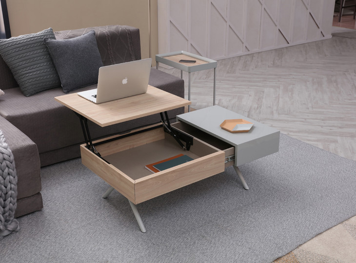 主材:科技木皮灰橡+深灰砂面油漆+砂面铁喷粉