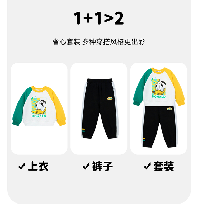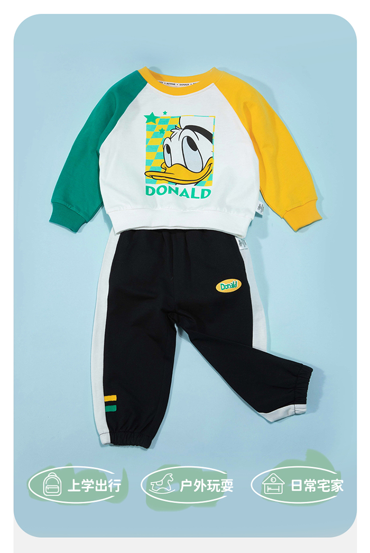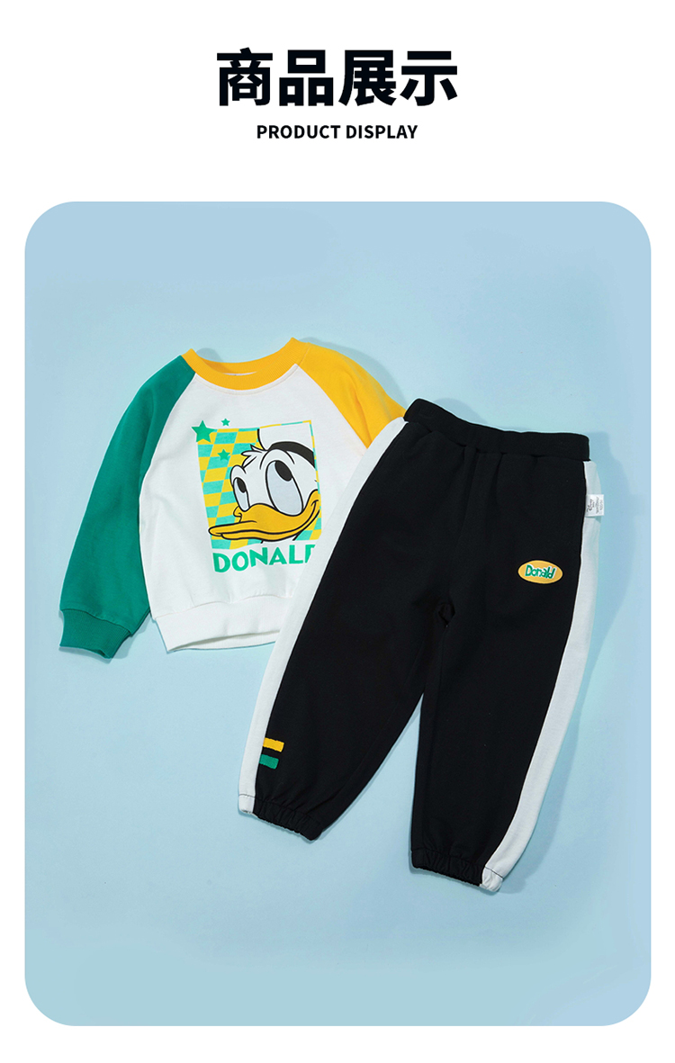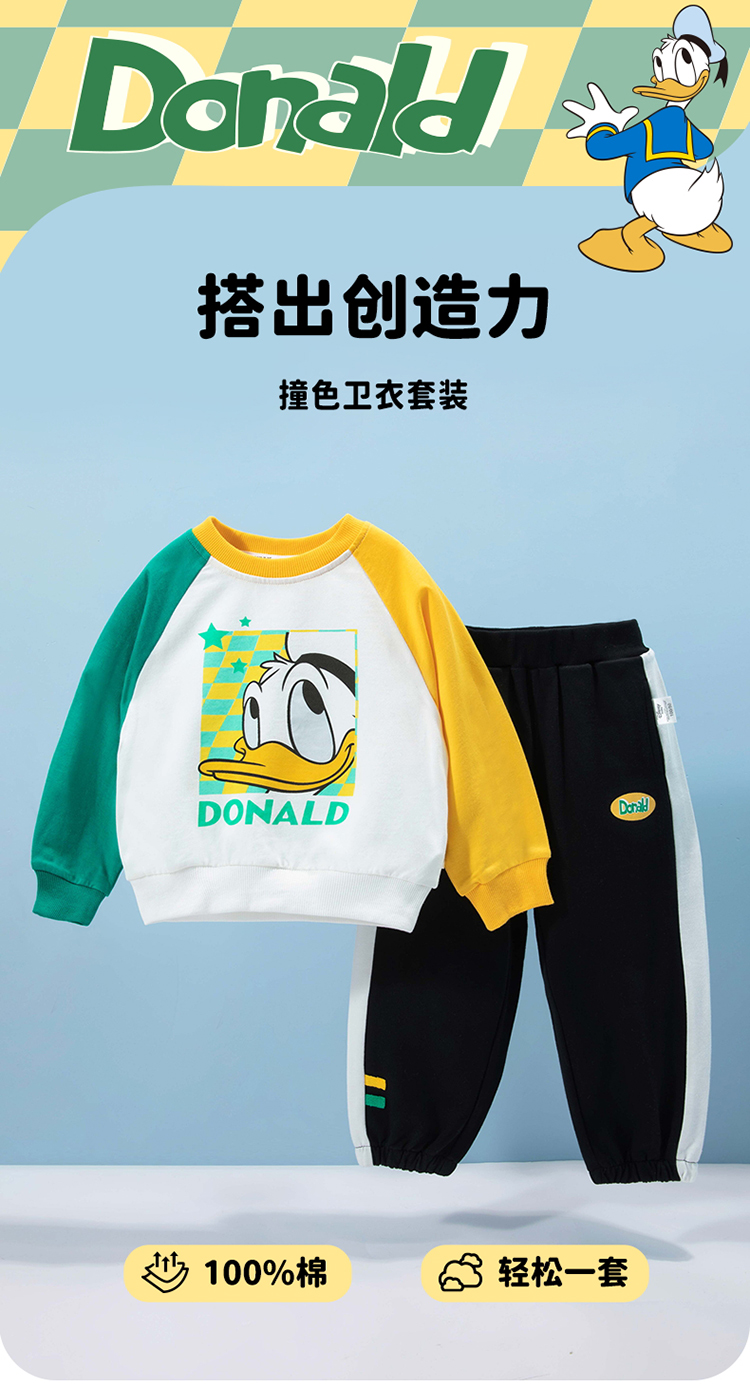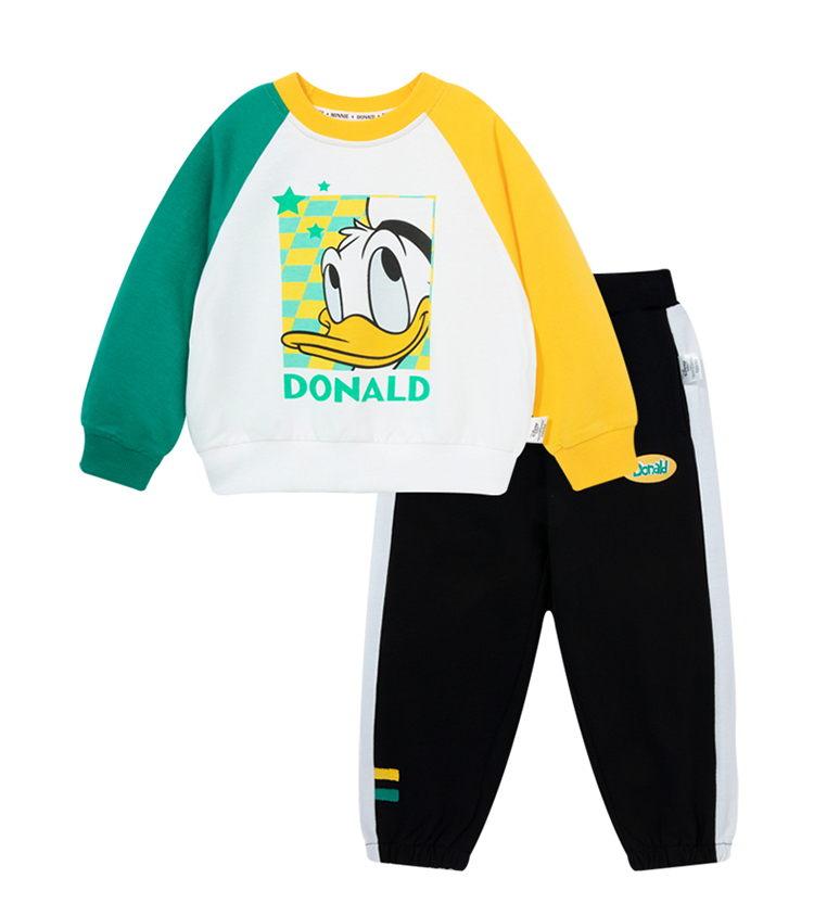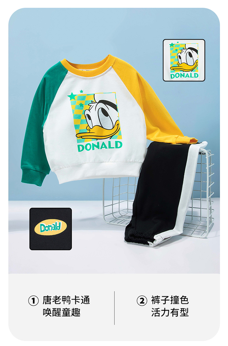 【唐老鸭印花撞色插肩袖】24春款男童套装运动休闲卫衣卫裤套装ZD1DT012
