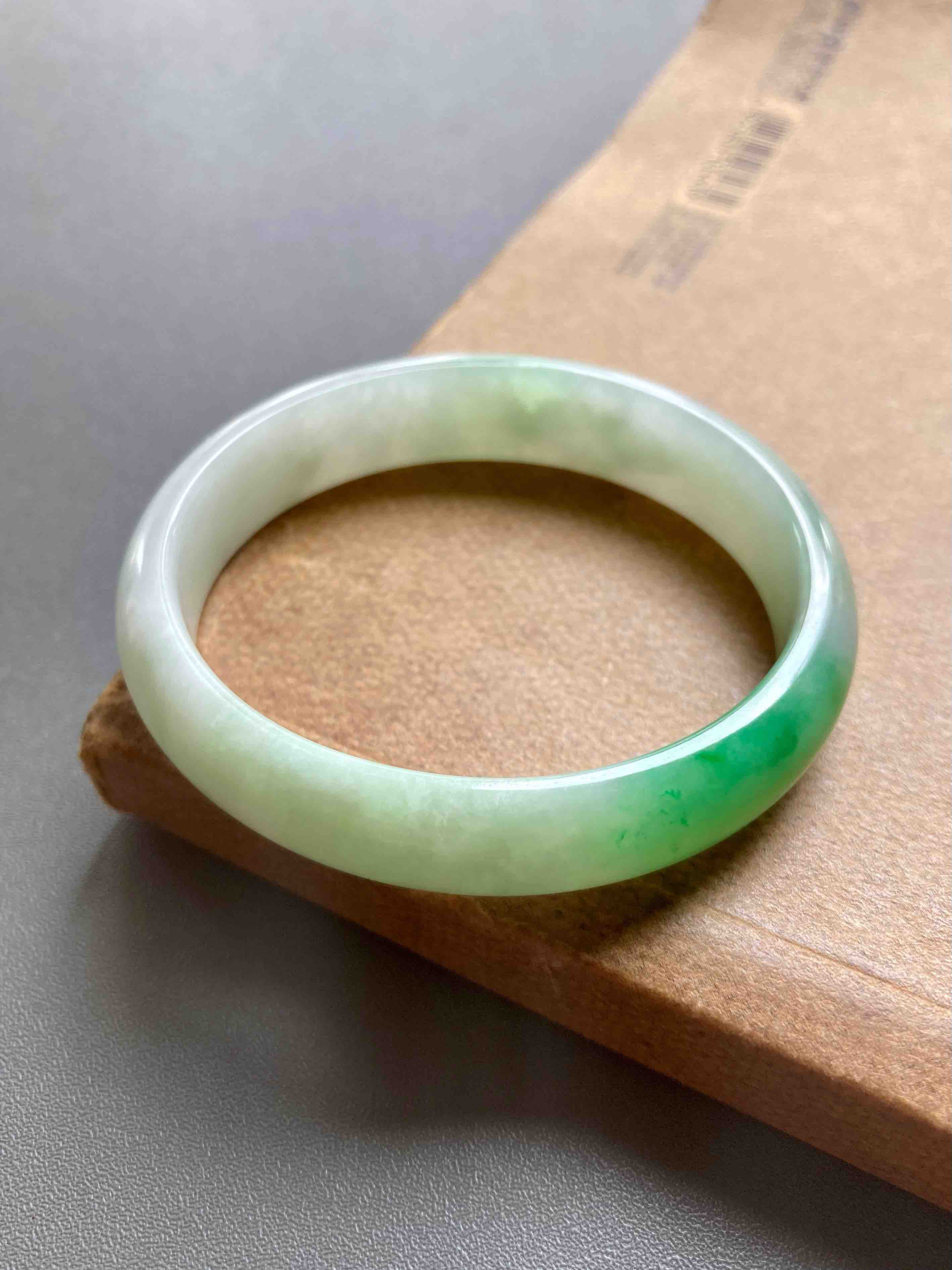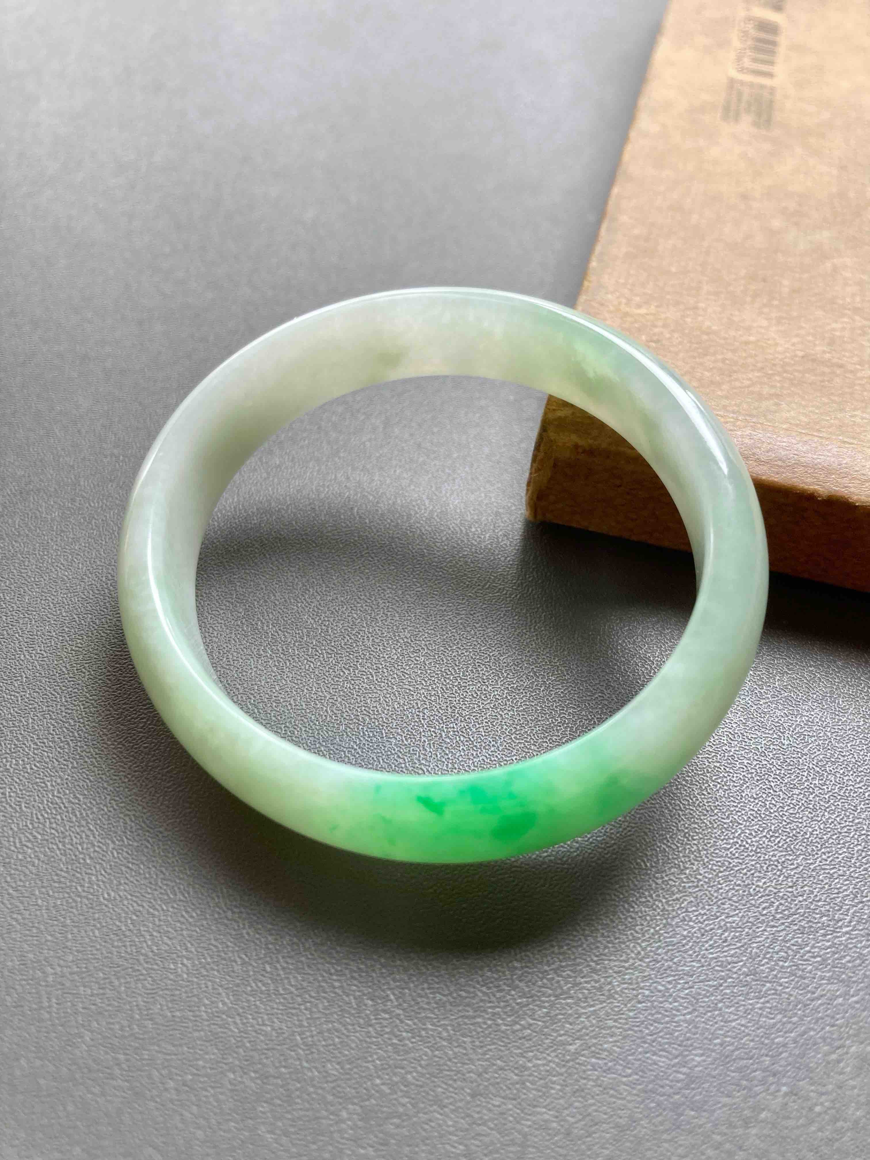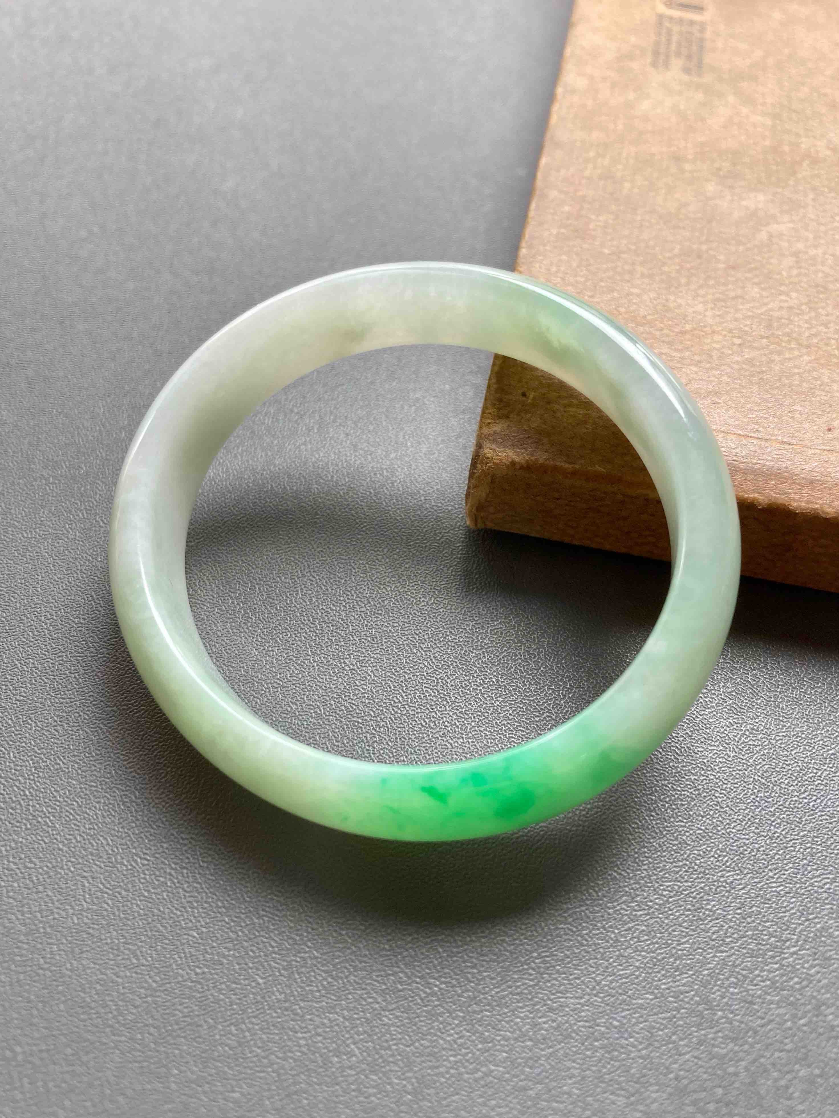 小手有福了,上哪找这么漂亮的阳绿小贵妃镯啊,种水清透细腻,阳绿艳丽无比,适合手寸49-50佩戴,内侧有点不明显的石纹,戴上看不到,行情两万以上的宝贝,我们几千块就好,能戴的赚大了