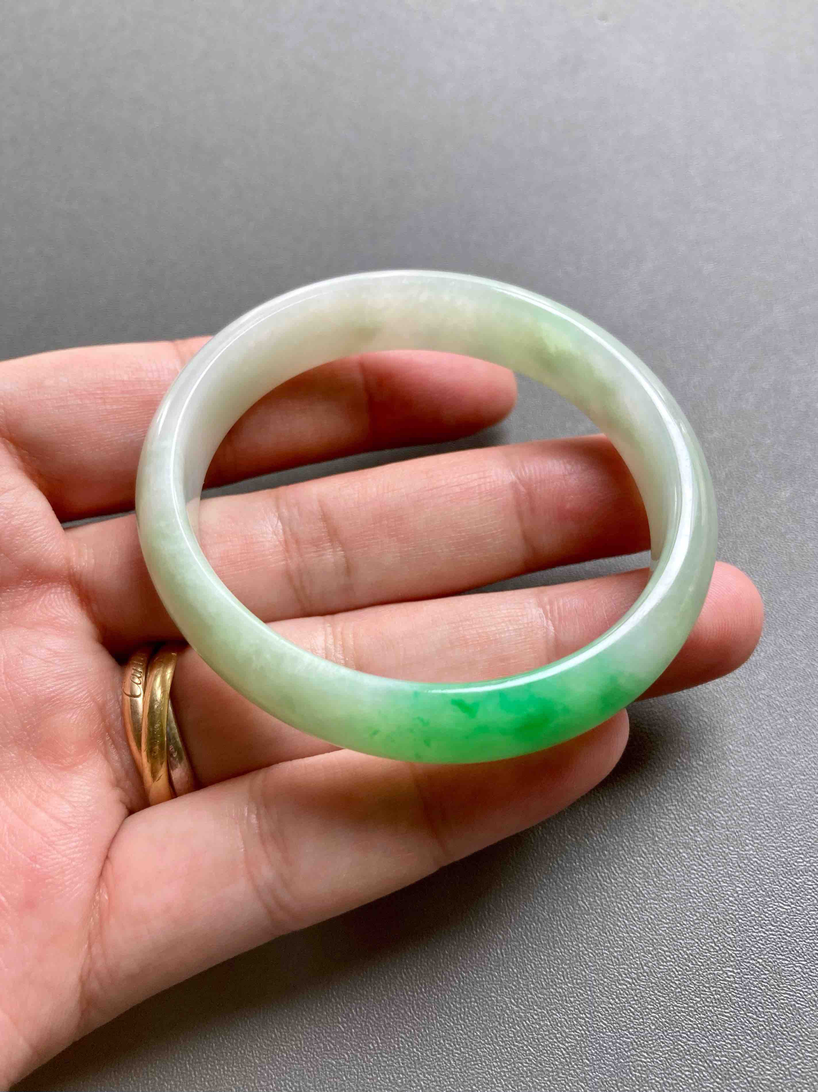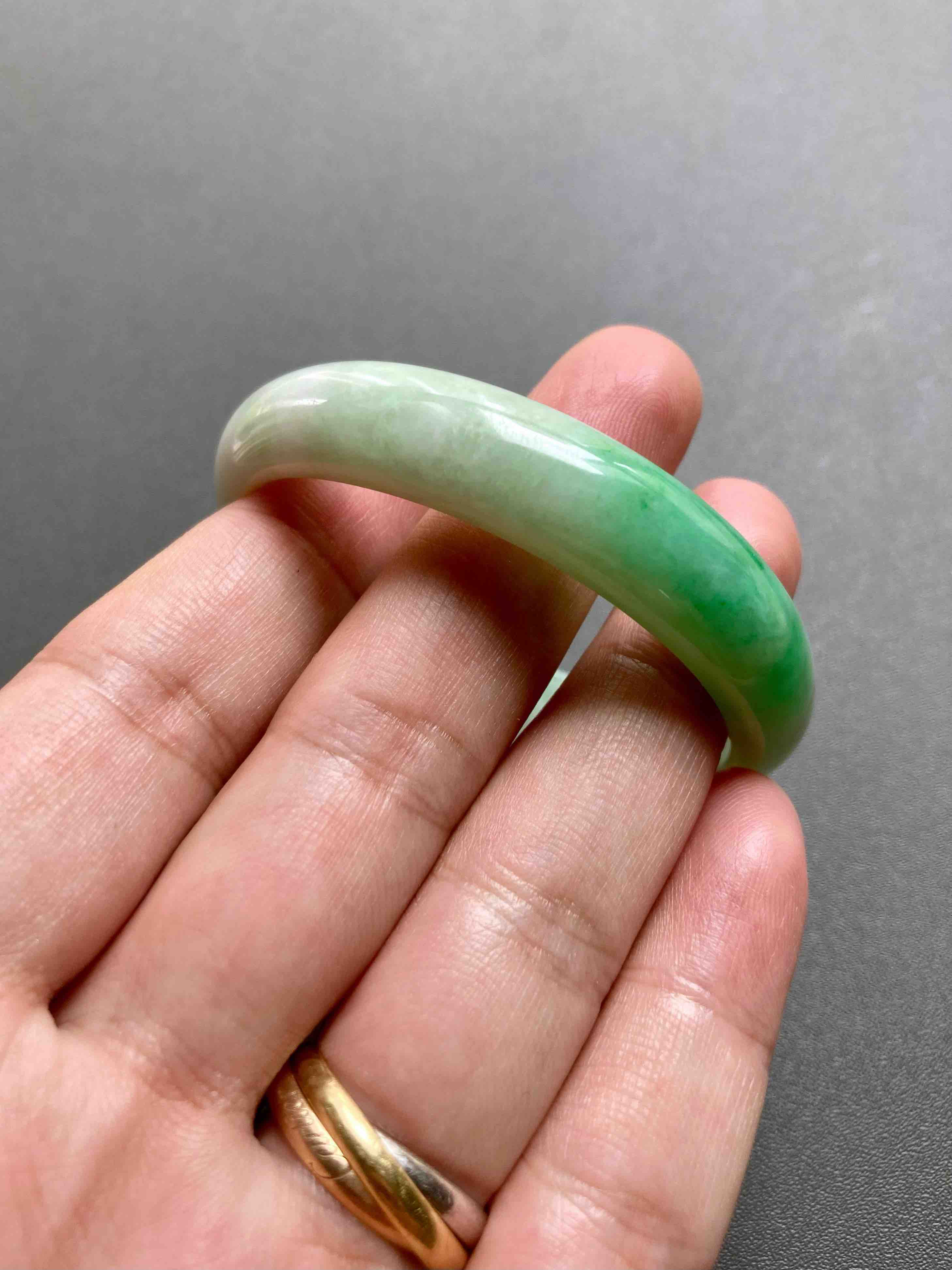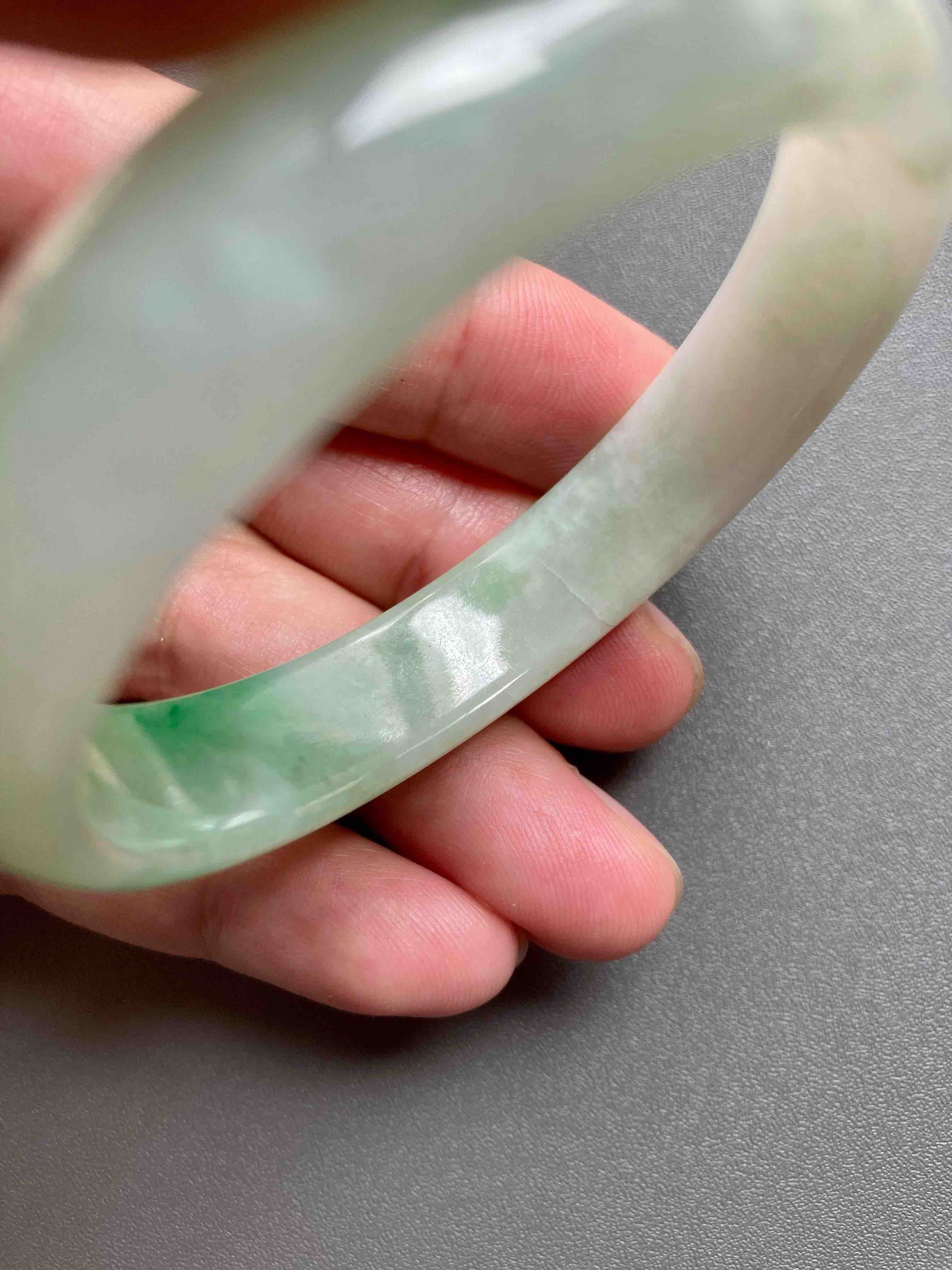 小手有福了,上哪找这么漂亮的阳绿小贵妃镯啊,种水清透细腻,阳绿艳丽无比,适合手寸49-50佩戴,内侧有点不明显的石纹,戴上看不到,行情两万以上的宝贝,我们几千块就好,能戴的赚大了