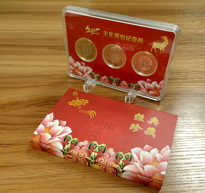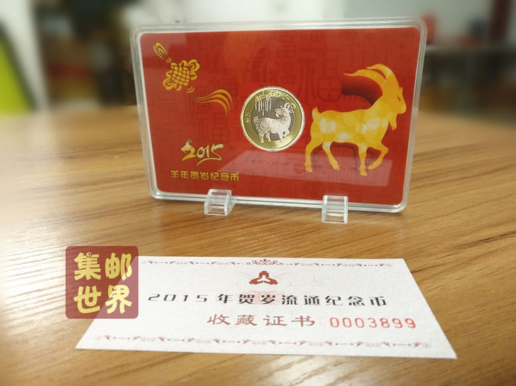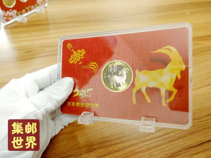 盒装正品2015羊币 唯一带PMMA盒+证书套装,送可立支架!