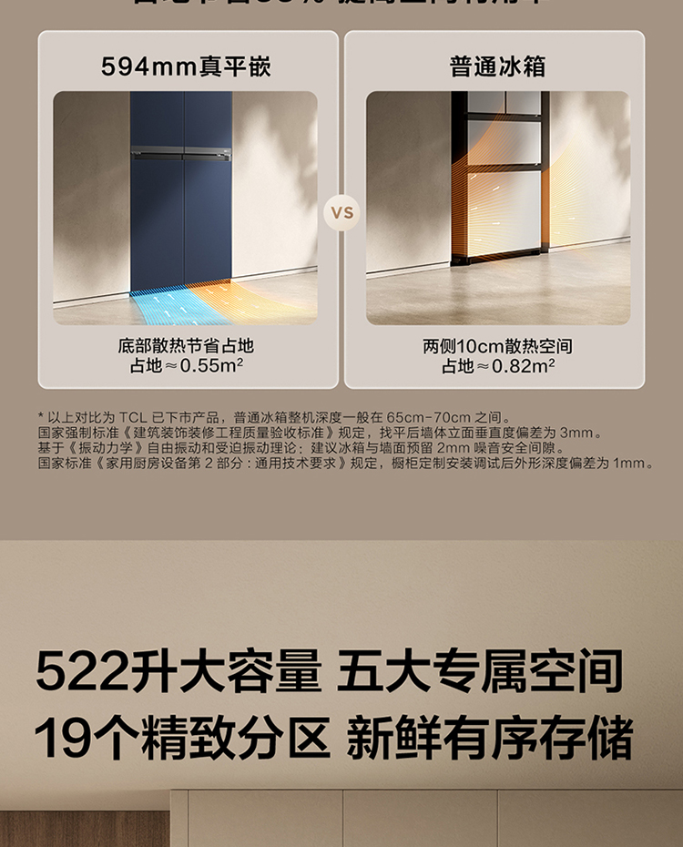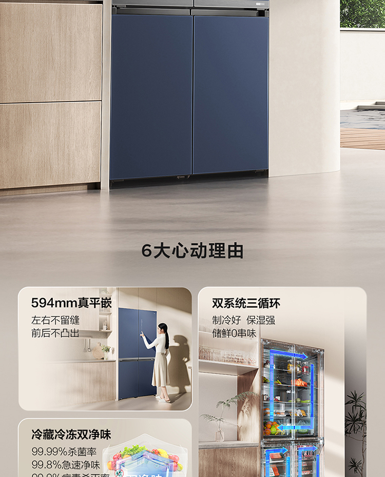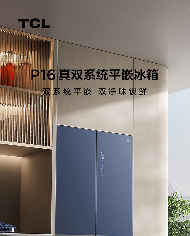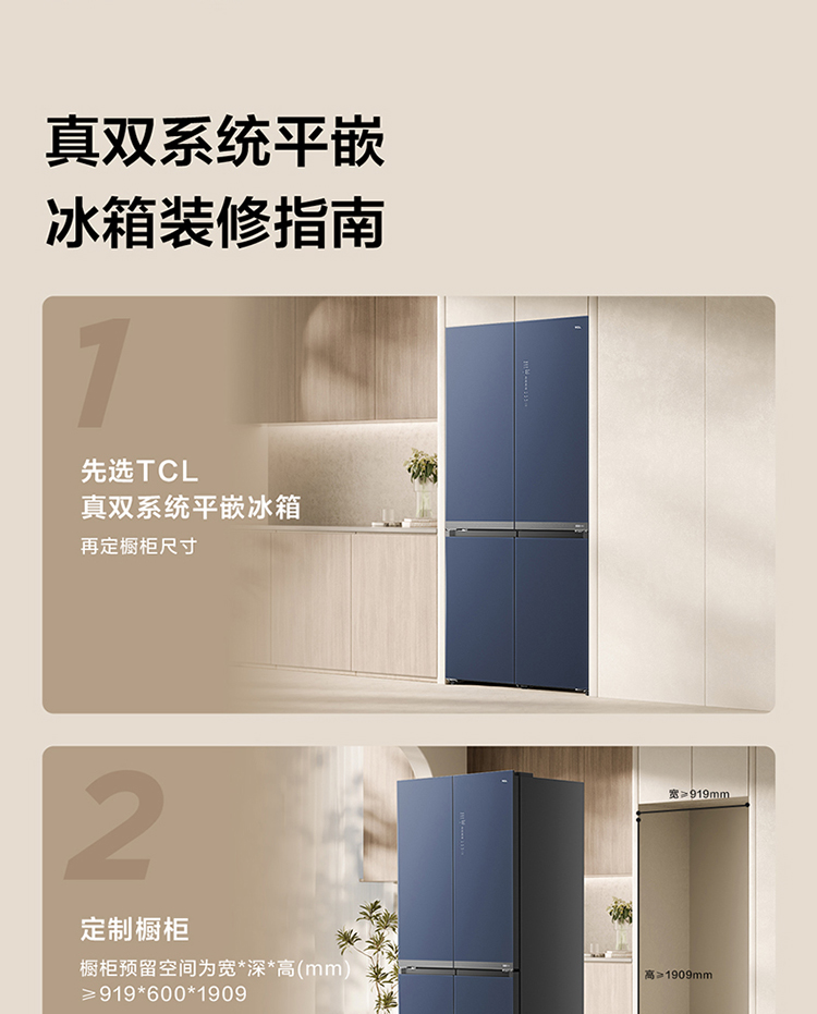 【TCL冰箱】 552升风冷无霜冰箱 超薄平嵌 -40℃深冷锁鲜 双净味 陶瓷蓝轻奢面板 R522P16-UQS瓷釉蓝