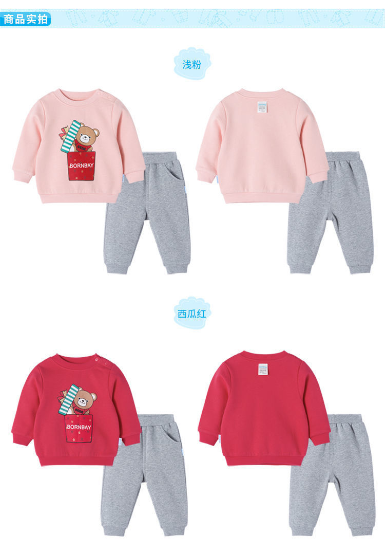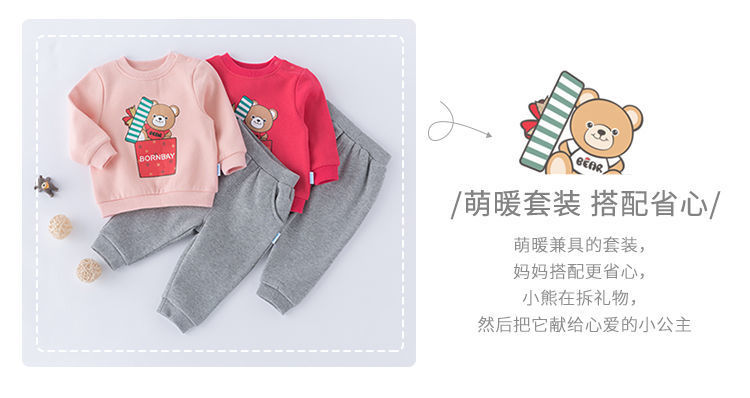 贝贝怡女童卫衣套装时尚洋气宽松外穿加绒两件套春秋新款百搭休闲213T2343