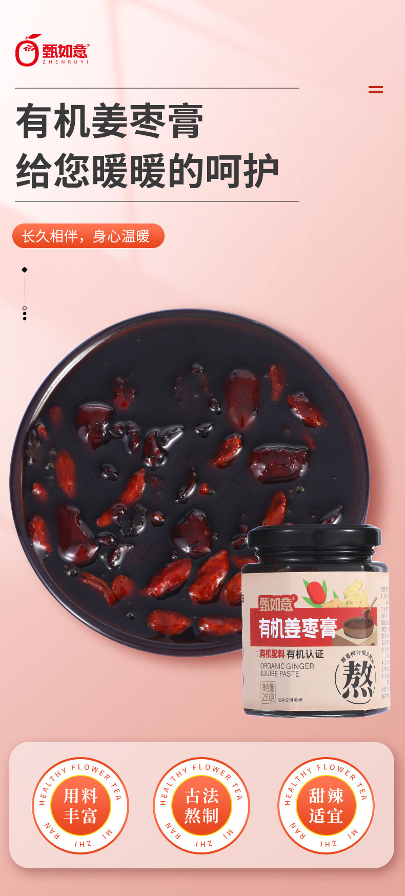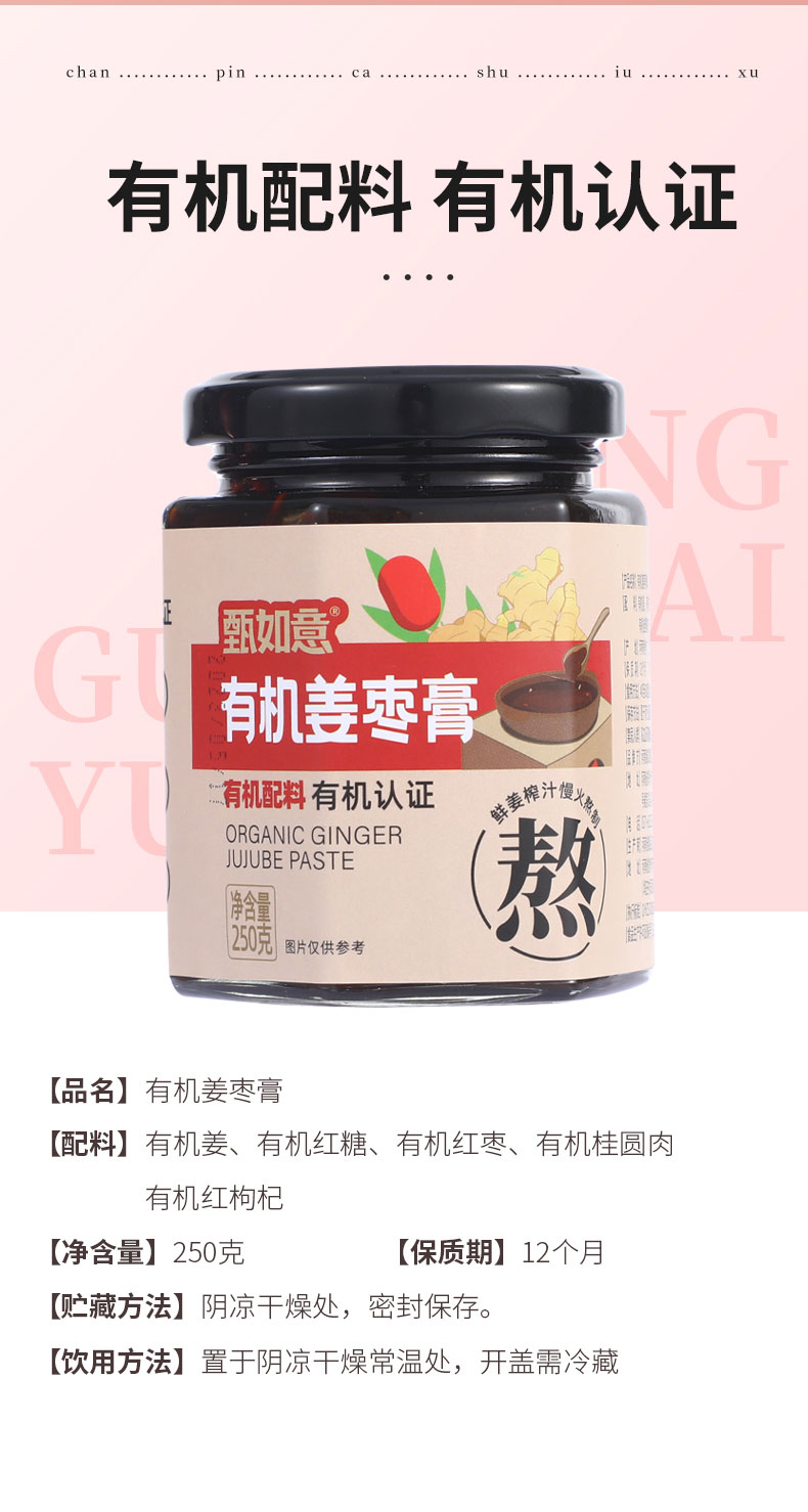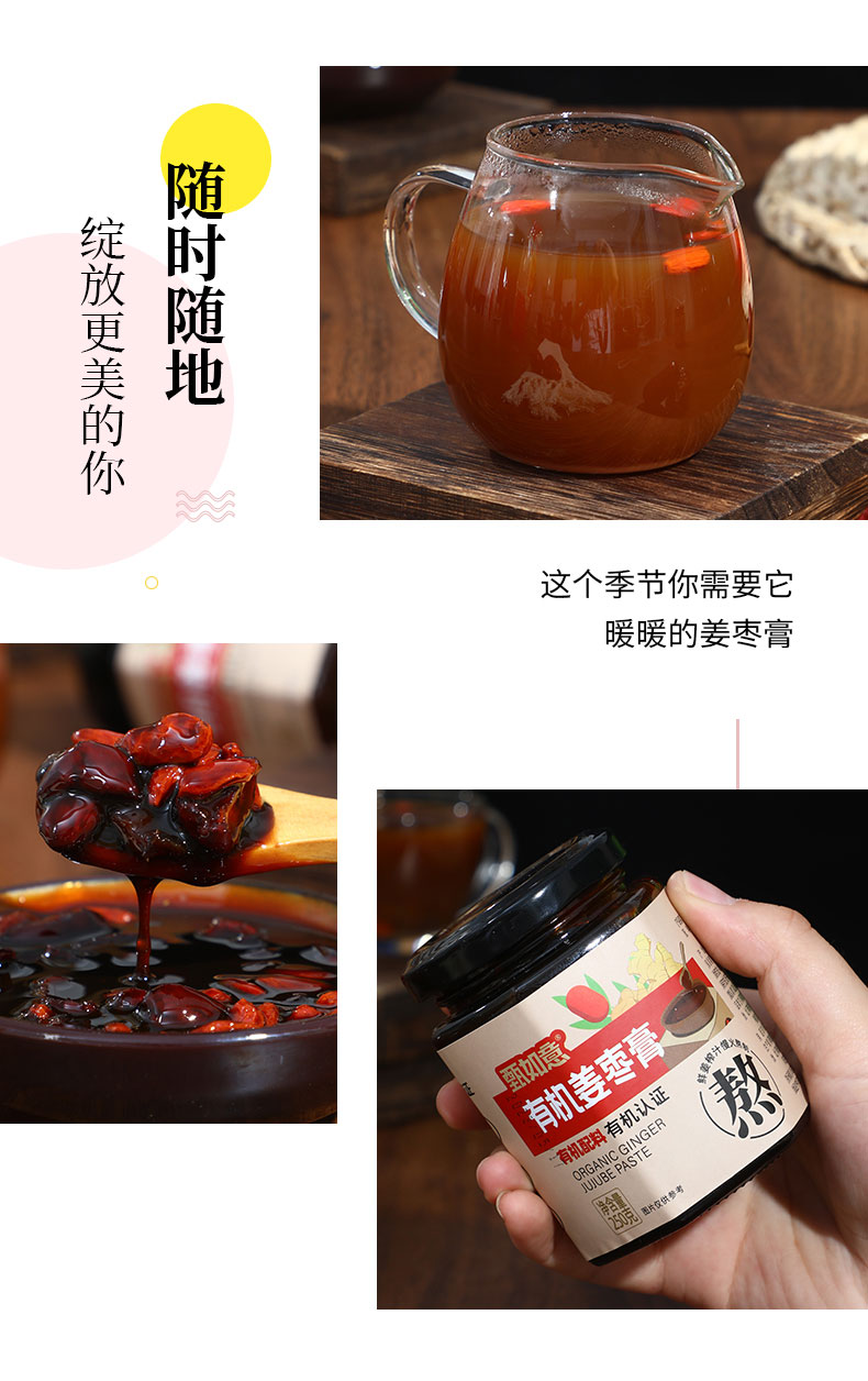 【厂商直发】有机姜枣膏250g姜汁红糖枣茶冲饮瓶装0添加姜茶