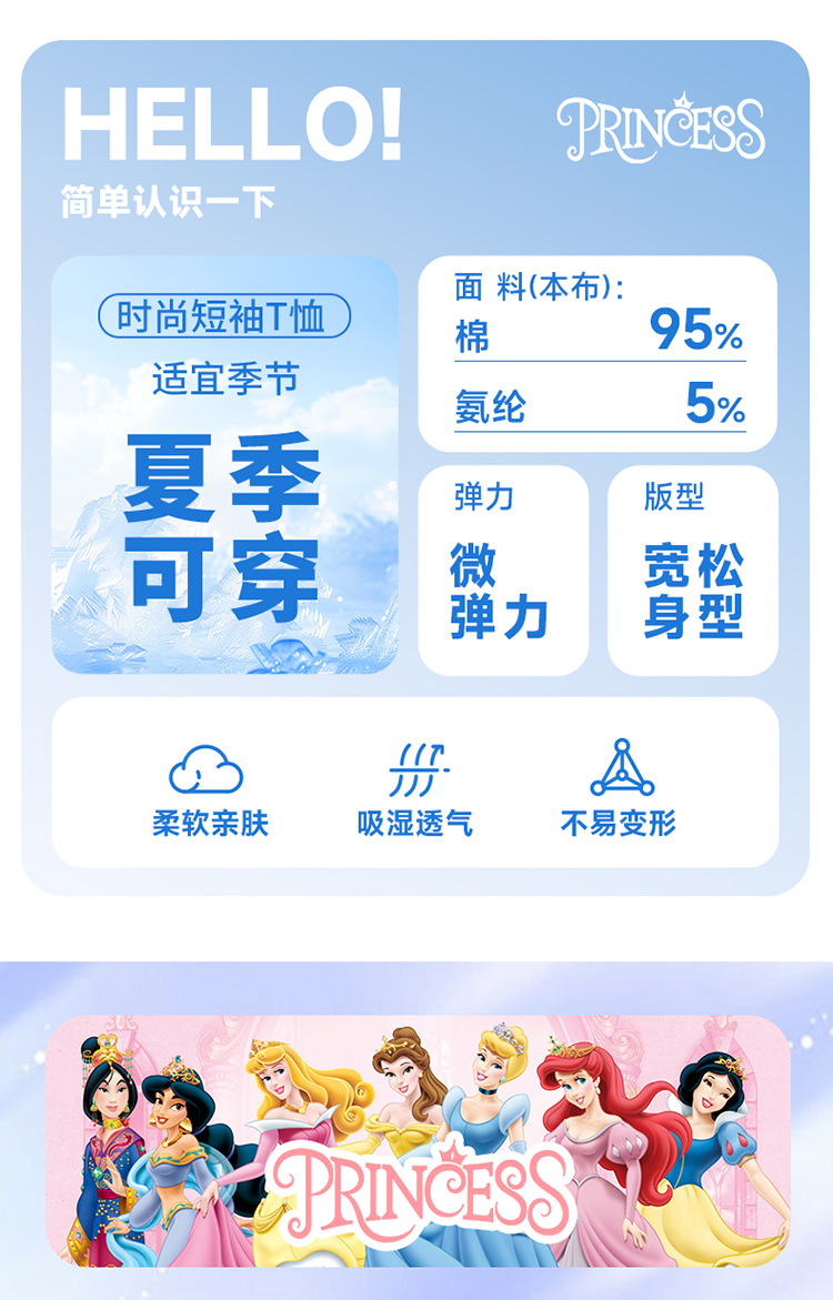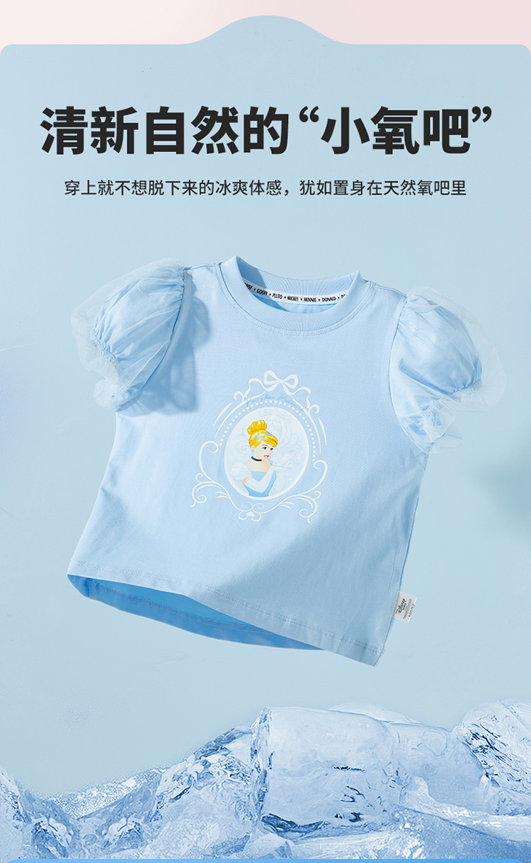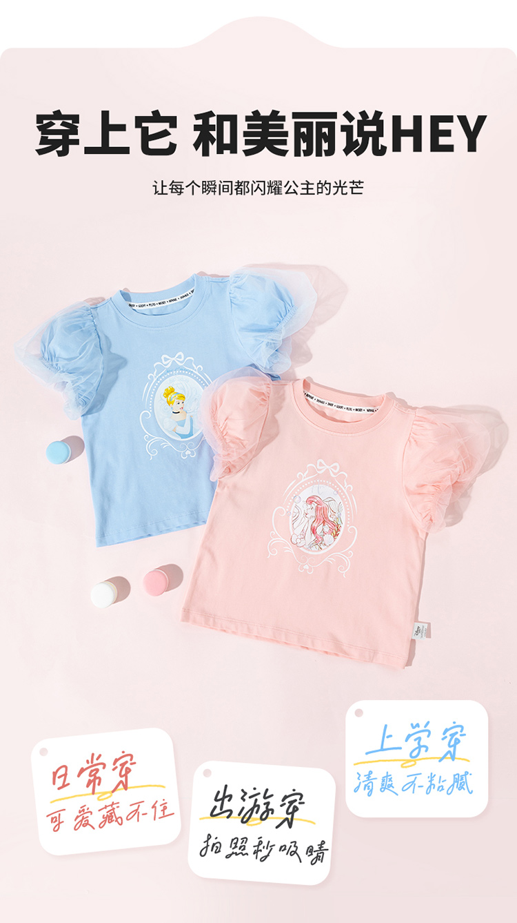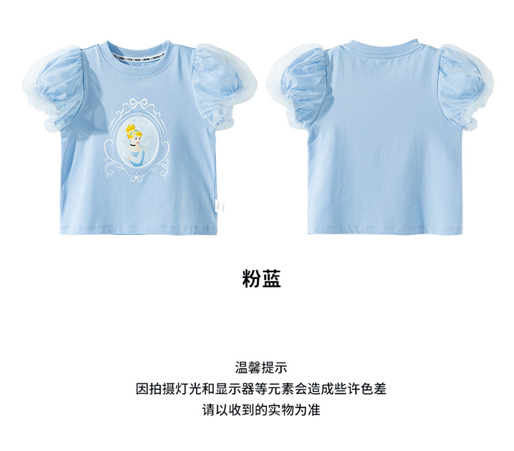 迪士尼宝宝迪士尼宝宝女童短袖T恤上衣舒适休闲透气儿童卡通T恤夏季新款