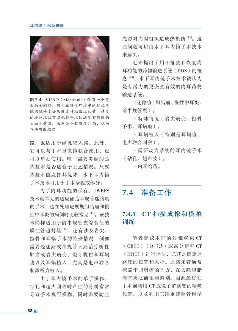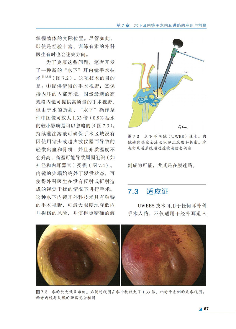 对耳科医生而言,获得耳内部结构的清晰图像至关重要。外耳道本身呈弯曲状,显微镜下所要到达的部位往往因为显微镜的直线视角而被外耳道遮蔽。在这样的背景下,随着高清数字图像技术的引入,耳内镜手术历经十几年的发展日益成熟。耳外科医生现在可以在不降低图像质量的情况下,将耳内微米级解剖结构投影到大型显示器上。随着耳内镜技术的迅速成熟及不断创新,经外耳道耳内镜手术(TEES)被带入到一个前所未有的新领域。