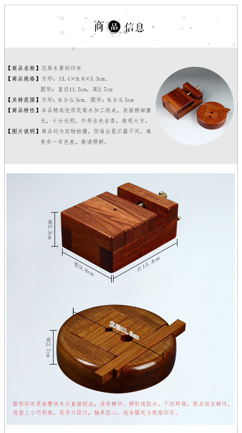 金石印坊精品花梨木方形篆刻印床 圆形篆刻印床 YCM-4 篆刻器具印床刻印工具