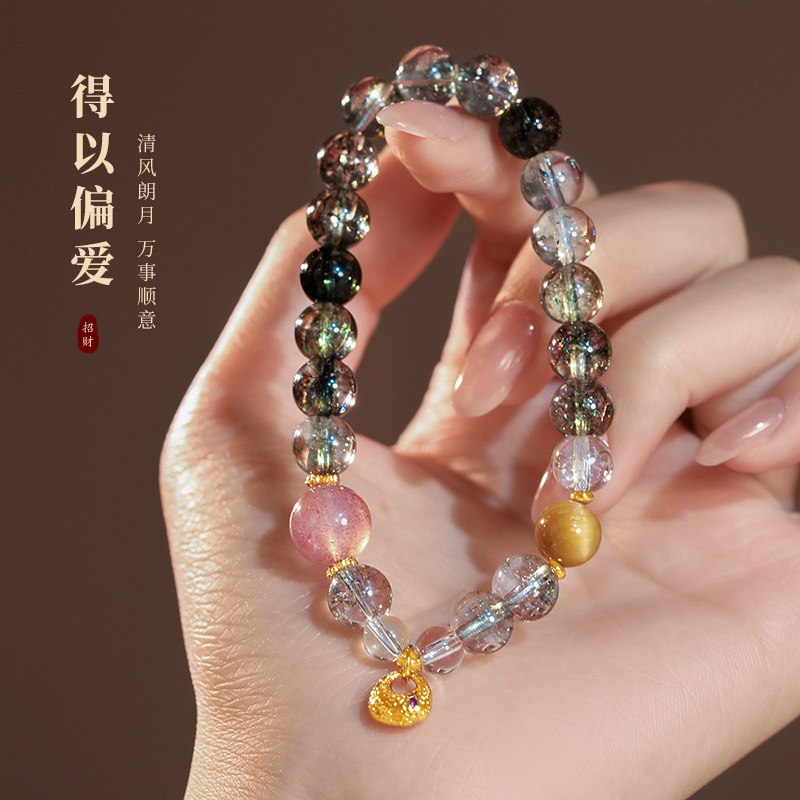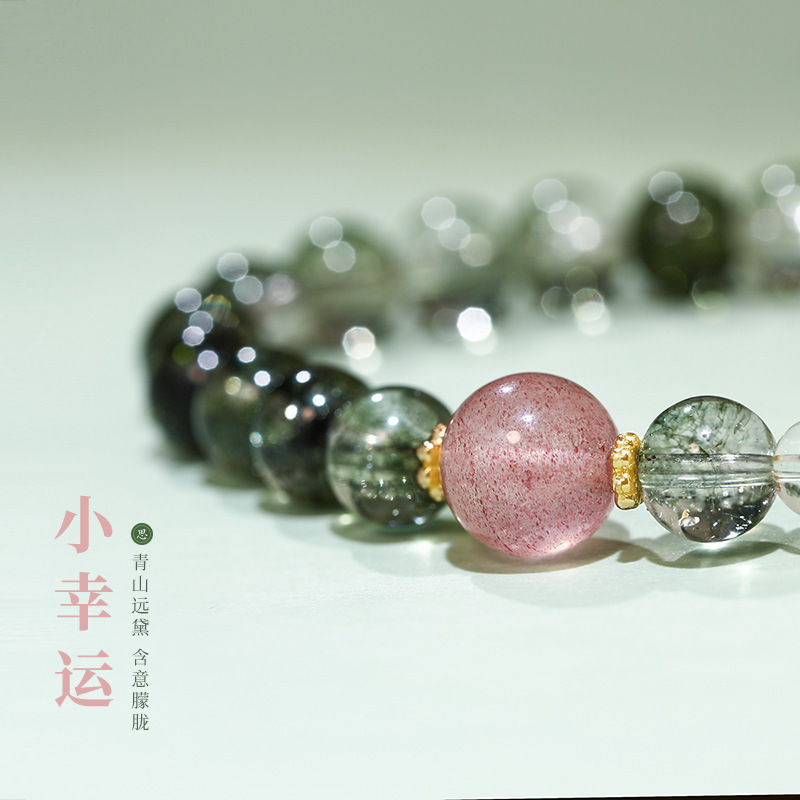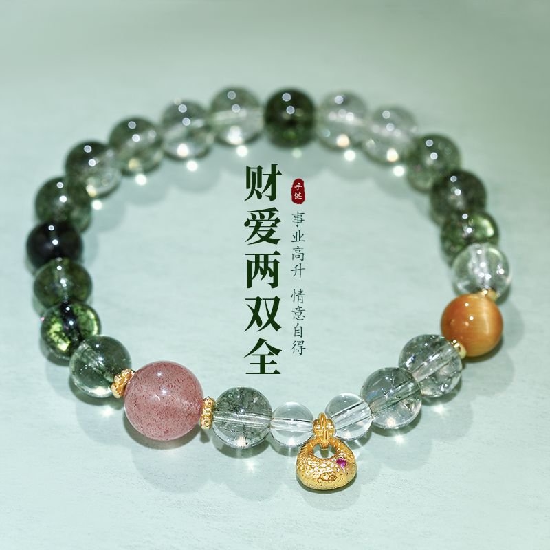 【新中式❗️绿发晶手提包吊坠手链】晶莹剔透,水润滋泽,清透冰糯,清风朗月,万事顺意!绿幽灵串珠手链女虎眼石草莓晶时尚手饰品