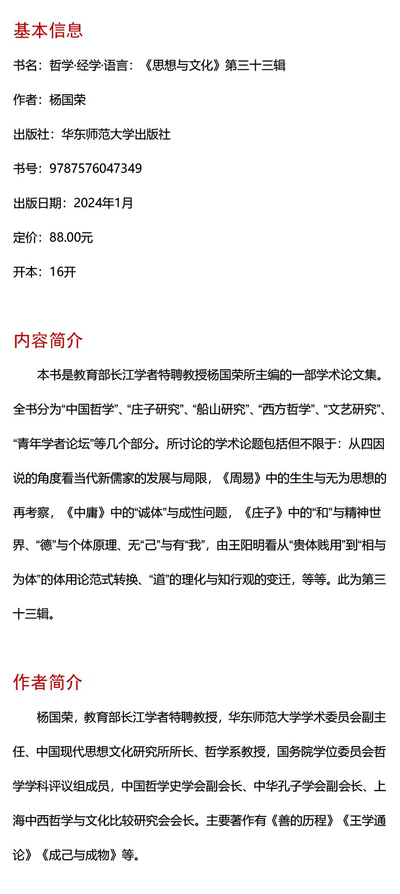 哲学 经学 语言 《思想与文化》第三十三辑 杨国荣主编