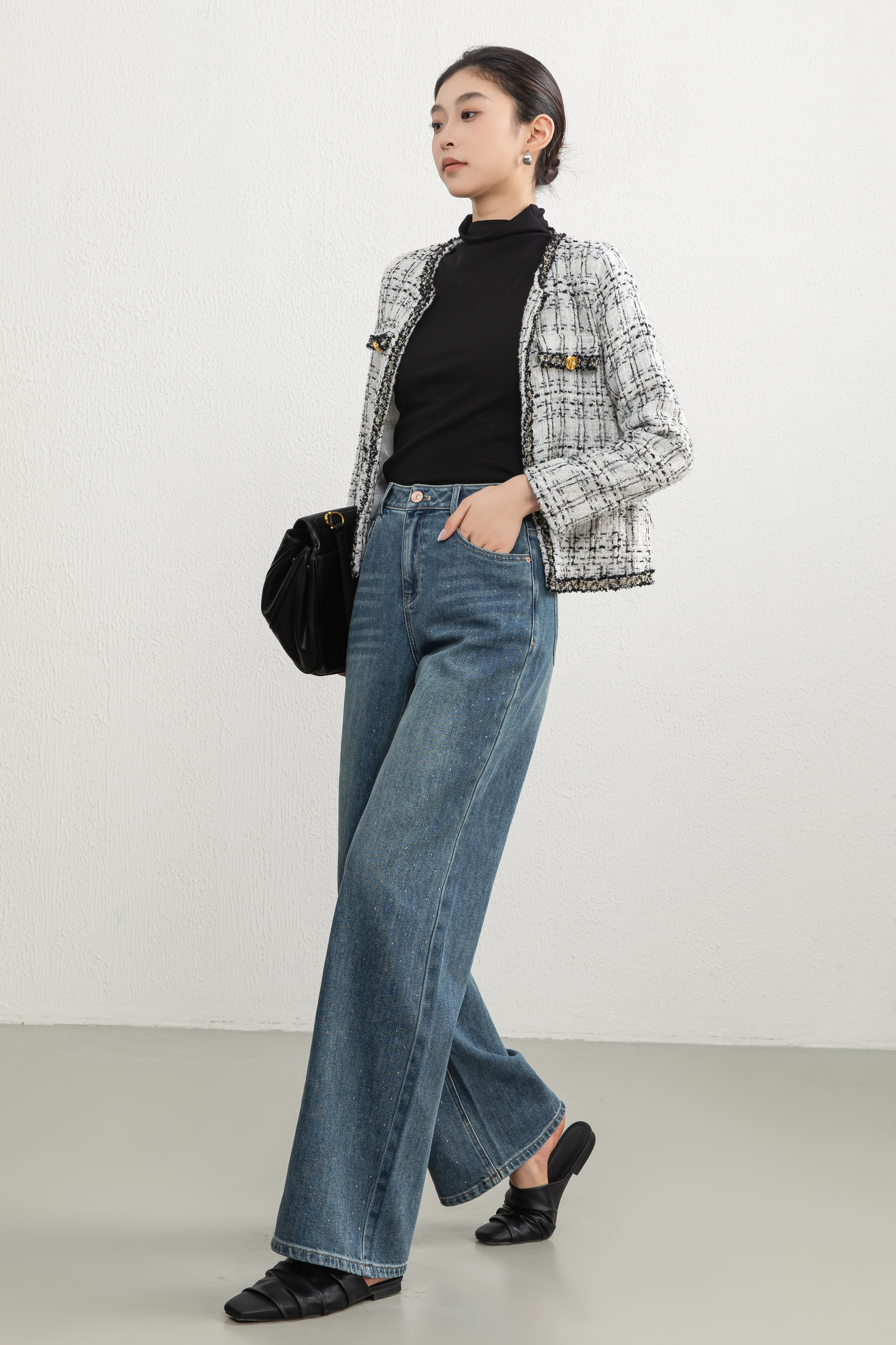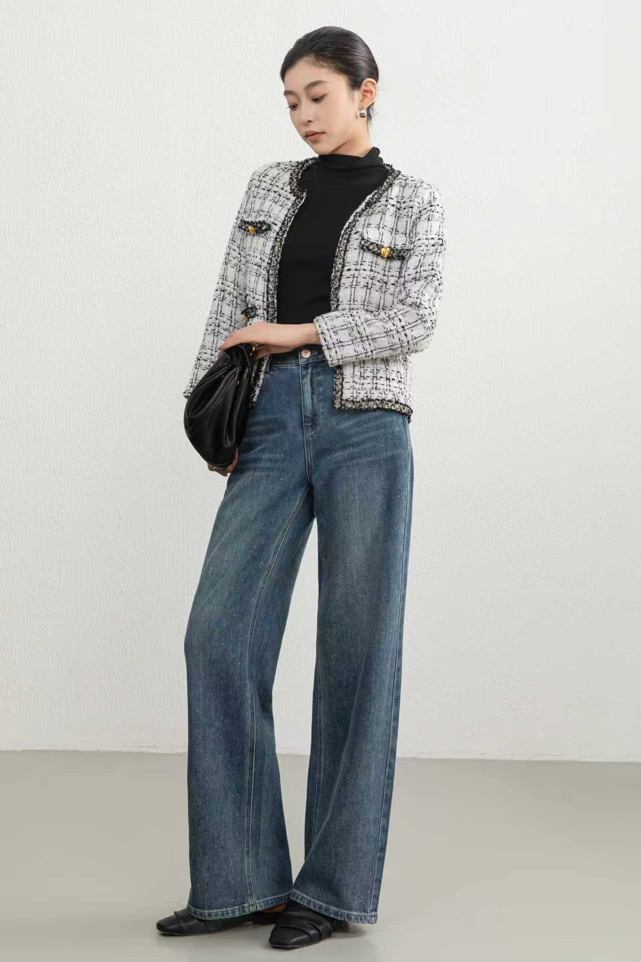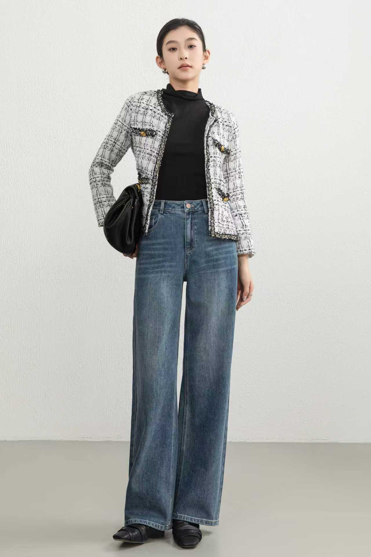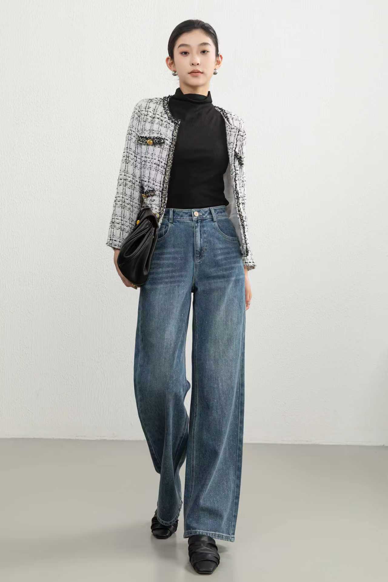 SZ3L08_蓝采和色_牛仔裤_秋季_高腰直筒阔腿宽松复古做旧_高级女装_BERNIEELEN 伯妮斯茵