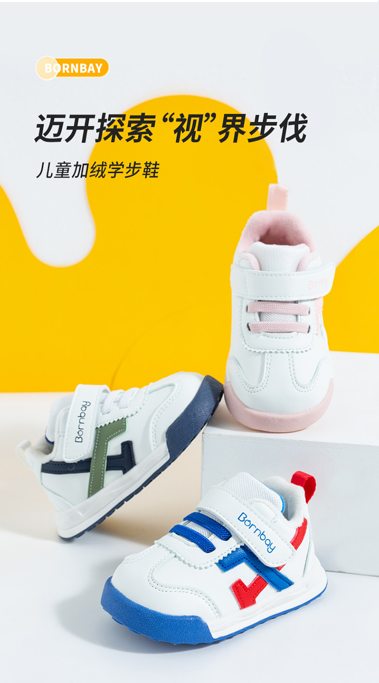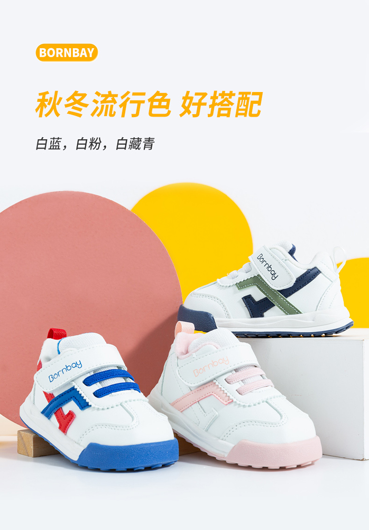 贝贝怡童鞋男女童春秋新品可爱宝宝加绒学步鞋撞色儿童休闲鞋224X437