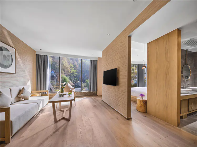 开放式卫生间则让客房通透不少