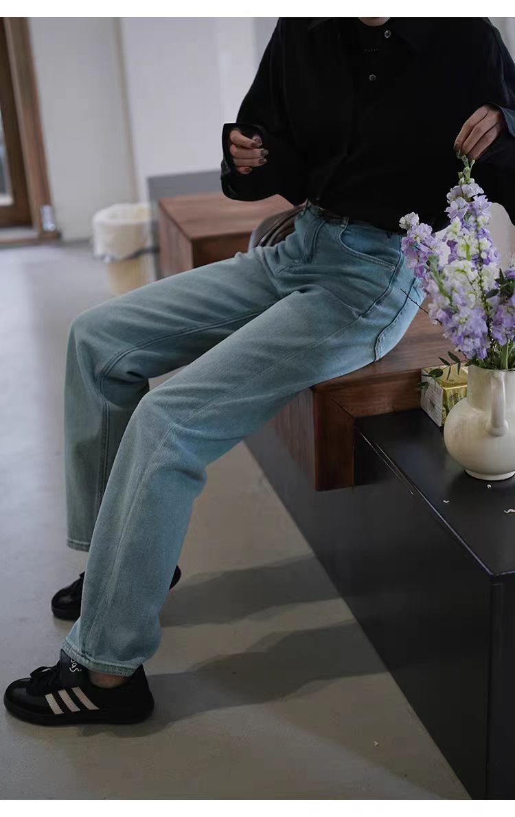 深浅过渡自然立体。版型做了经典的直筒裤型能够很好的修饰腿型,对身材的包容性很高。基础百搭,能够适配你衣橱里的各种单品,轻轻松松就能穿出时髦休闲。