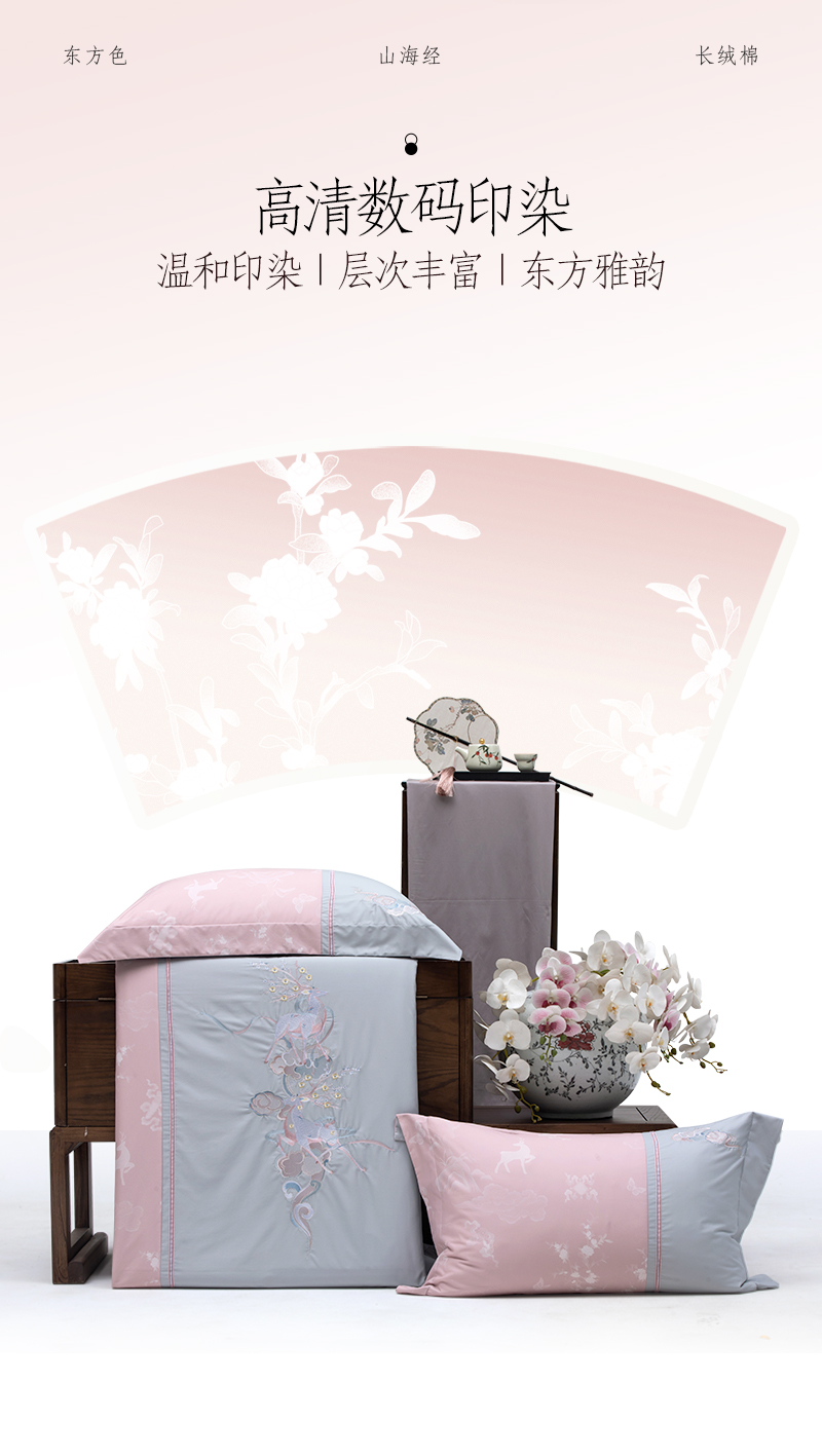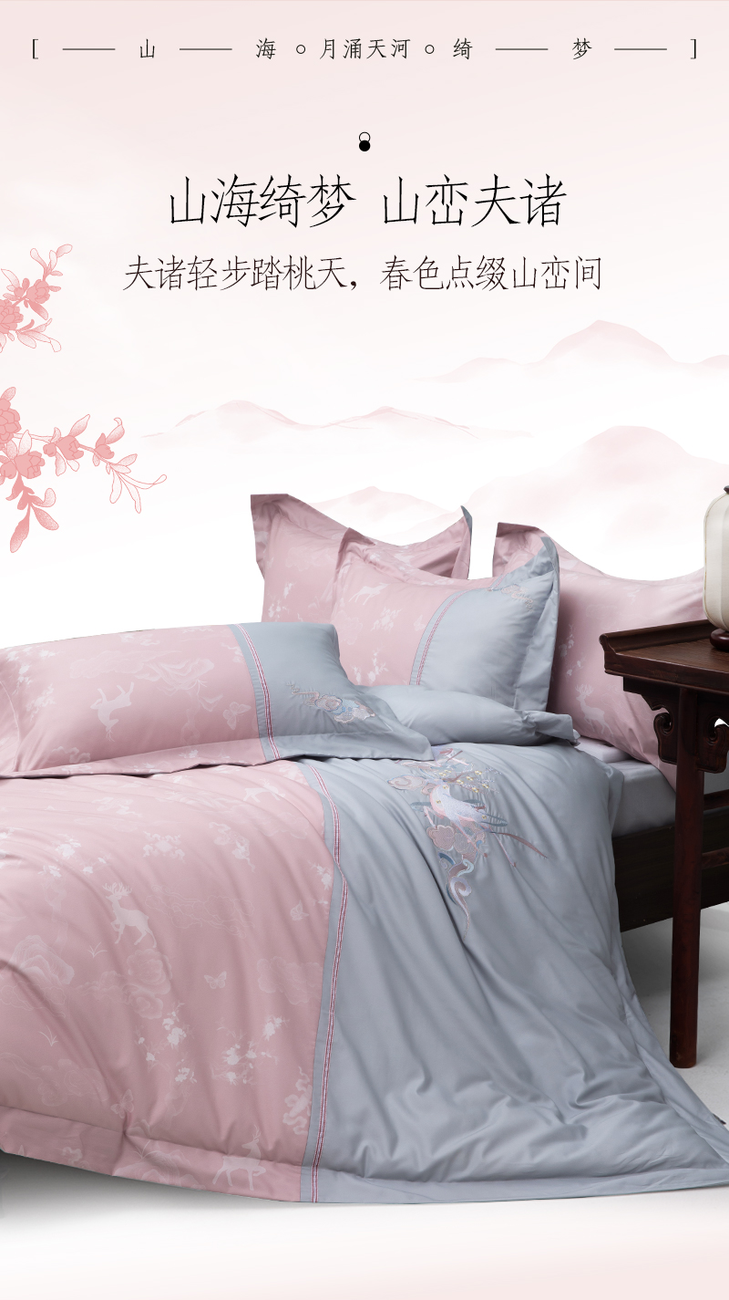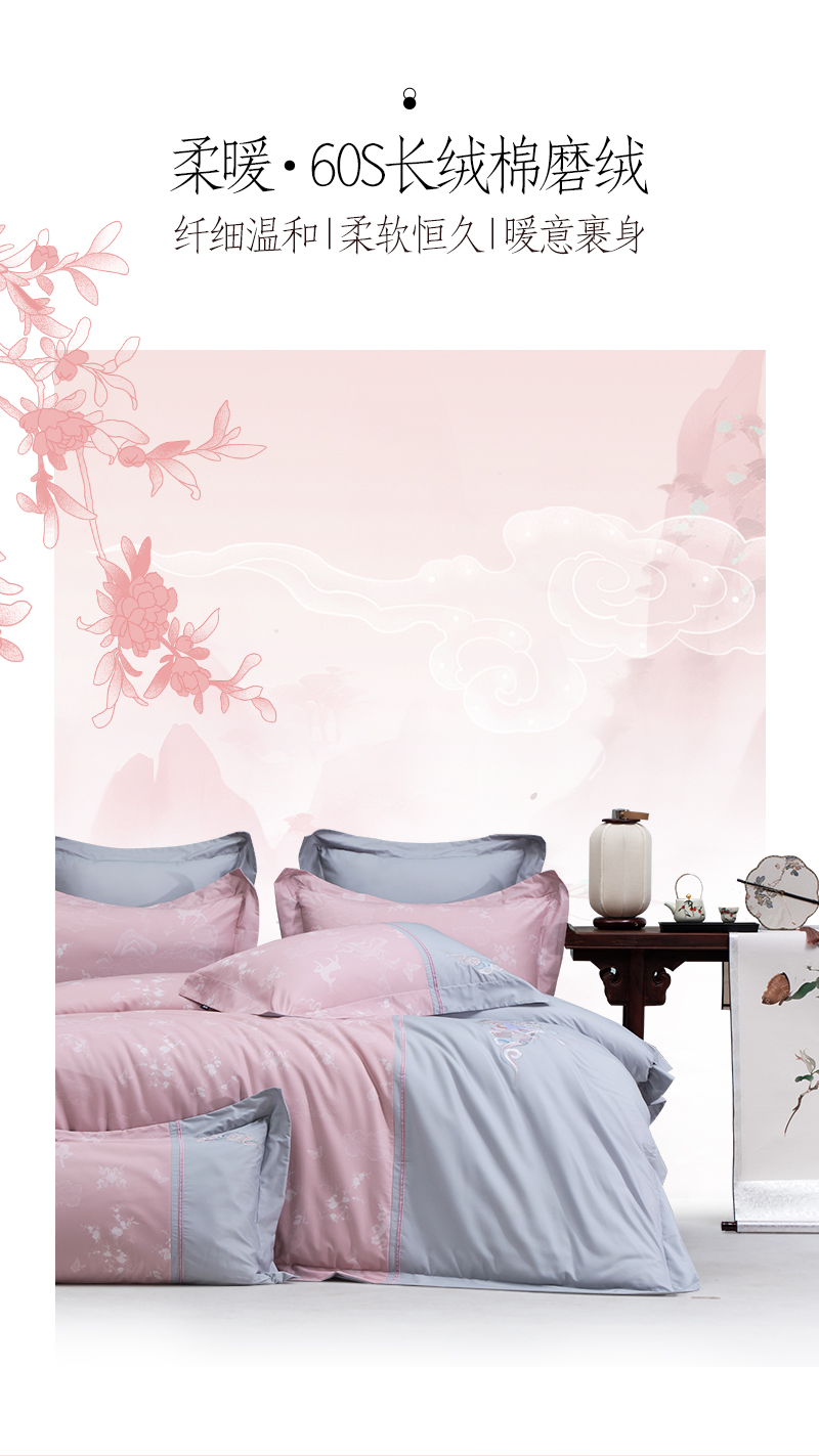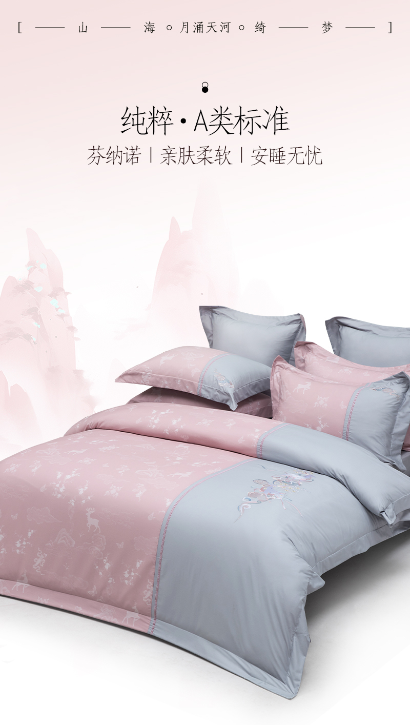 多喜爱山海经 60S贡缎磨绒四件套 月涌天河