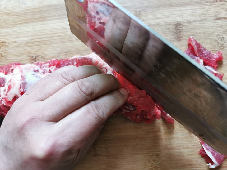 我们家喜欢吃牛肉。牛肉好不好吃,尤其是炒牛肉、涮火锅牛肉好不好吃,切得好不好尤其重要。