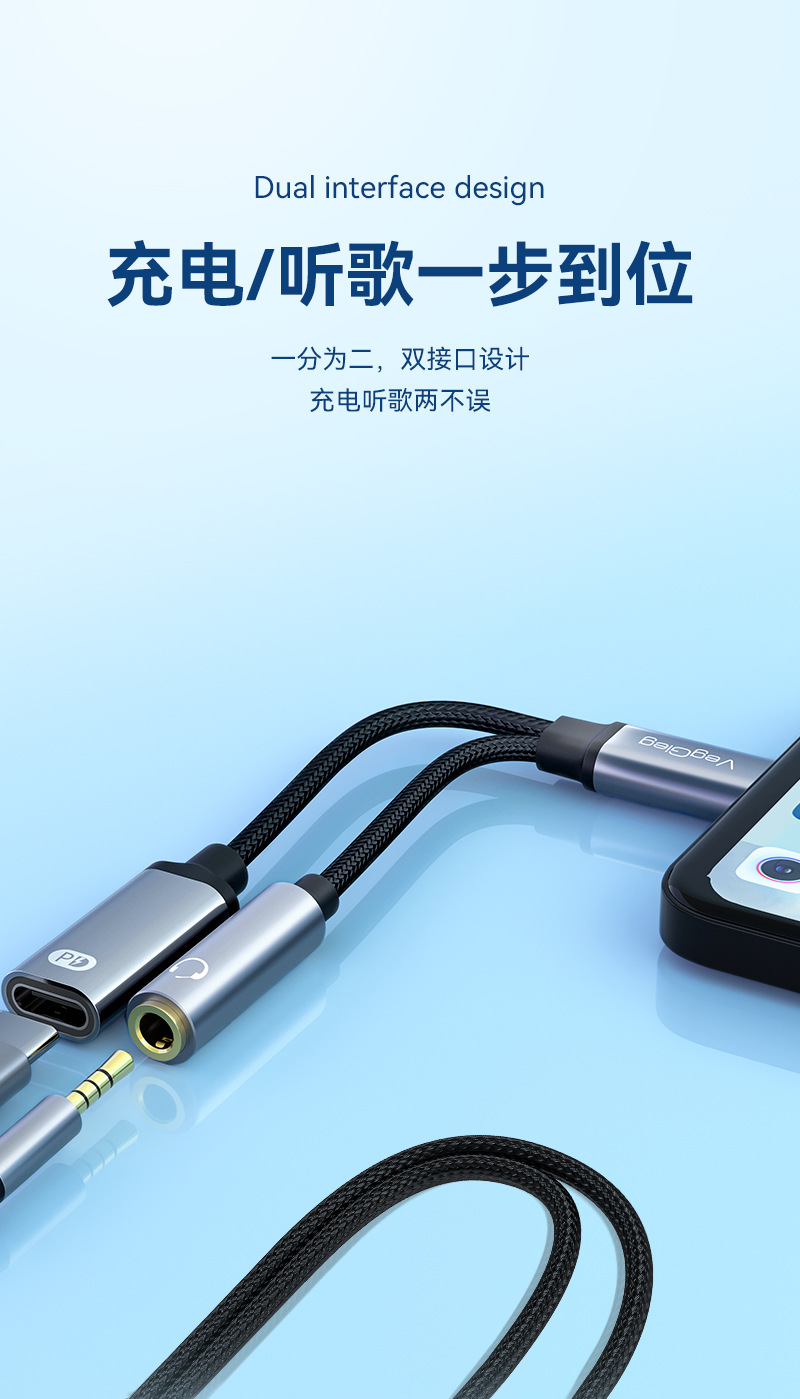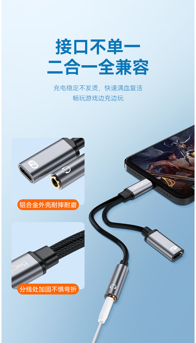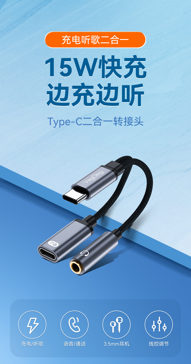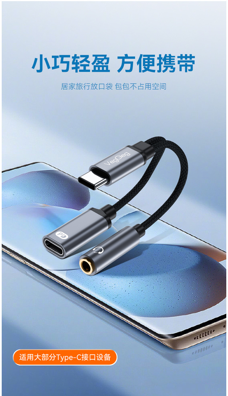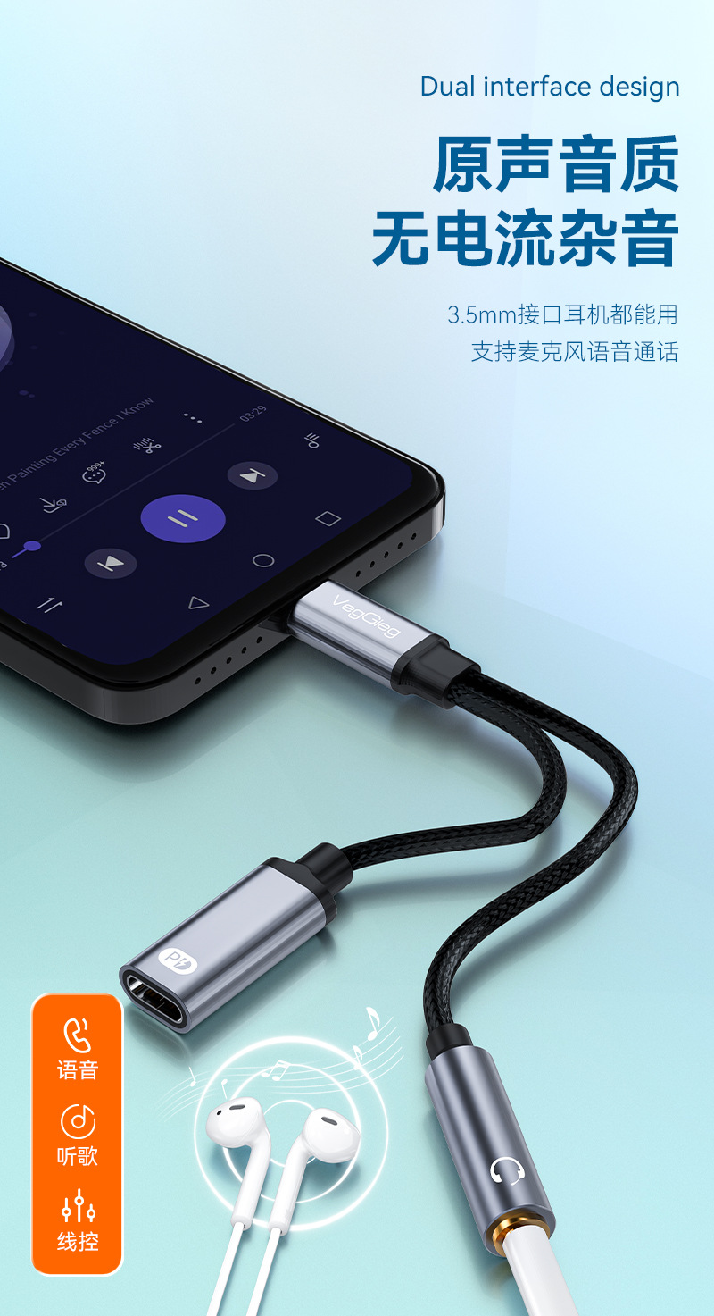 严选【数字带供电】type-c转3.5耳机转接头OTG线音频适用华为苹果15转接头1个