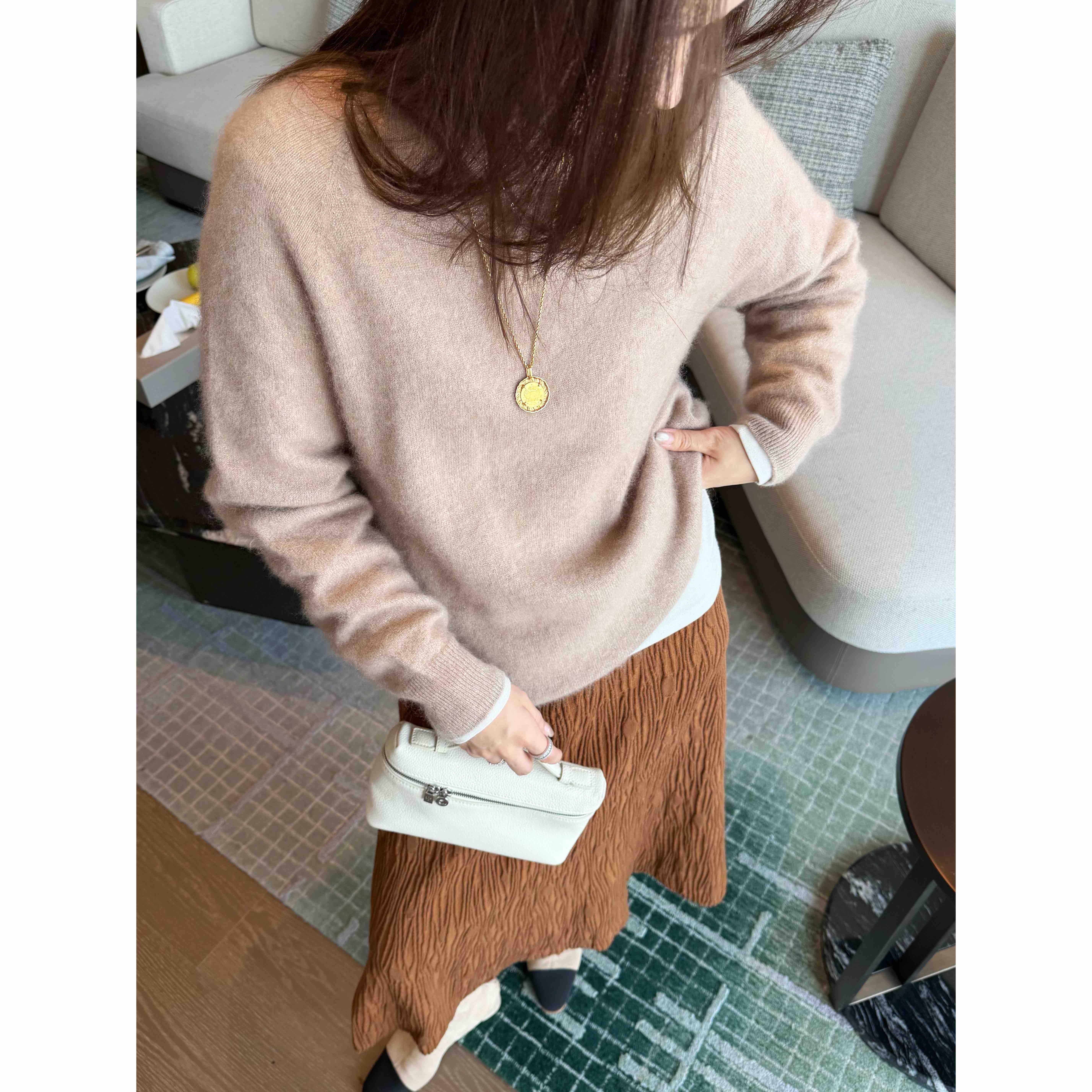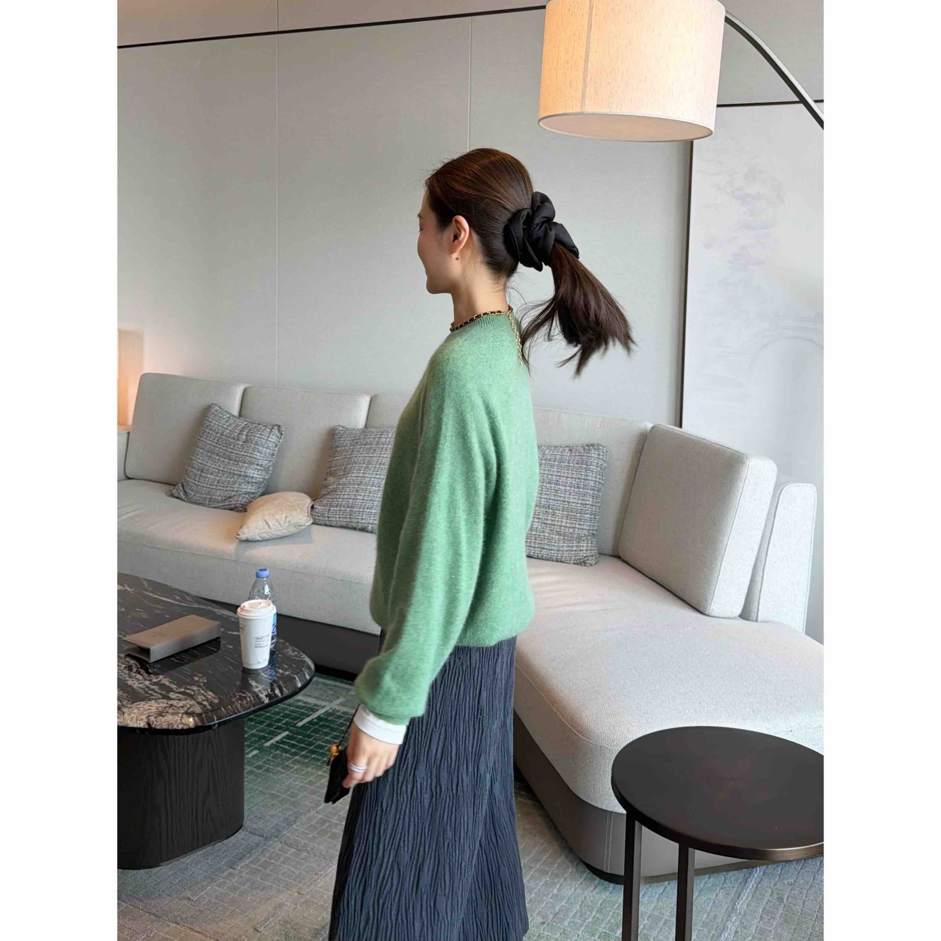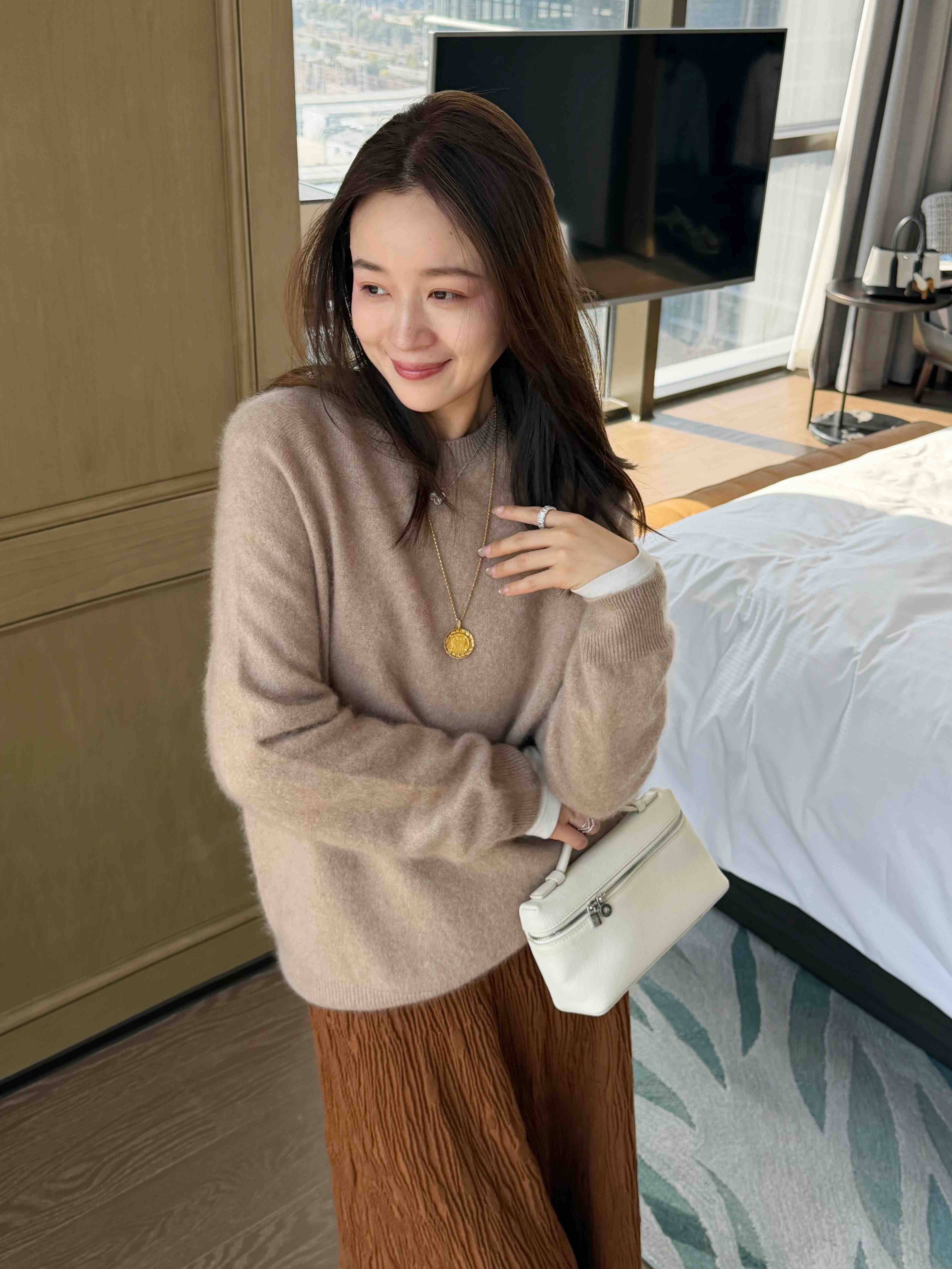面料 85%羊毛 7%羊绒 4%真丝 4%聚酯纤维