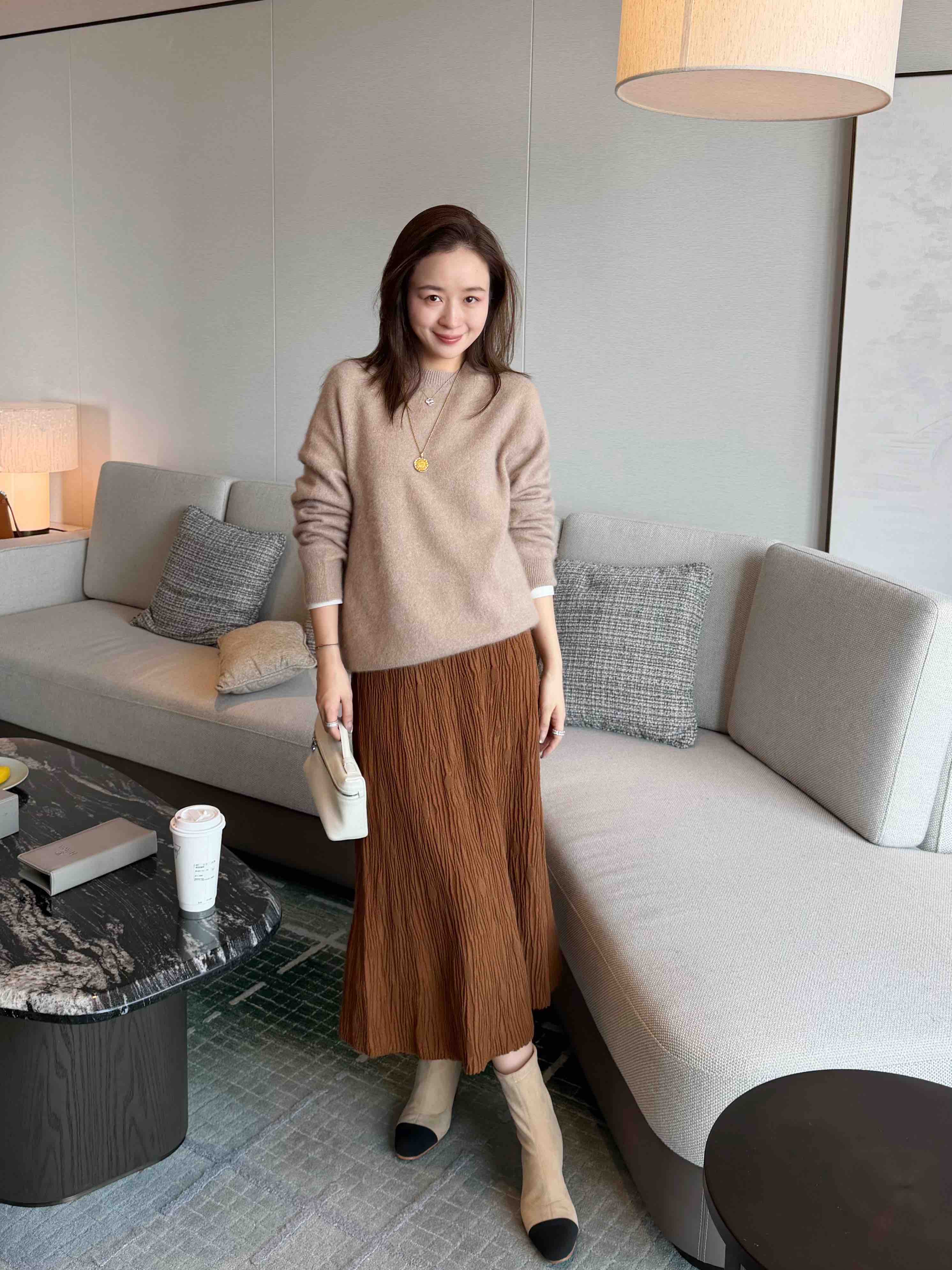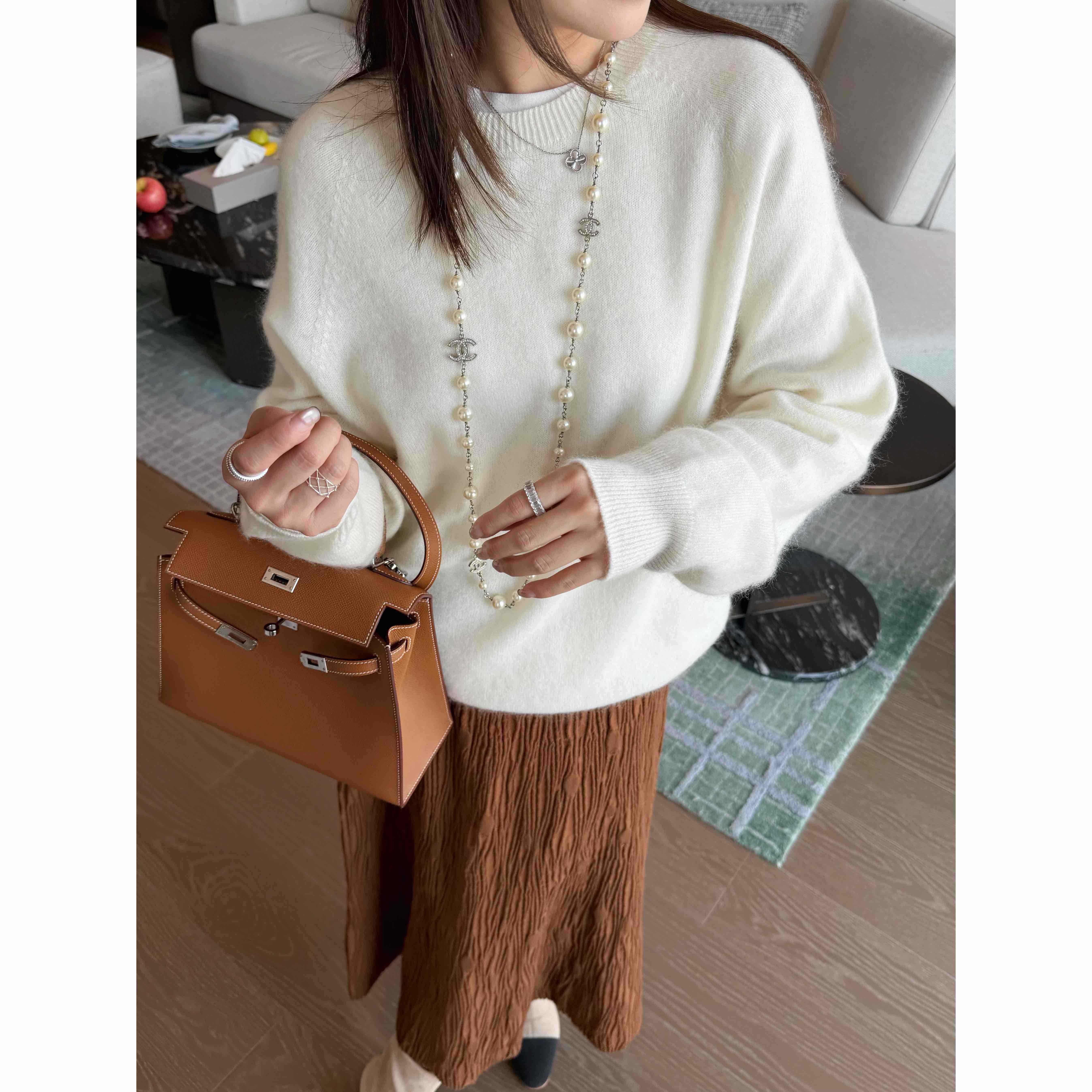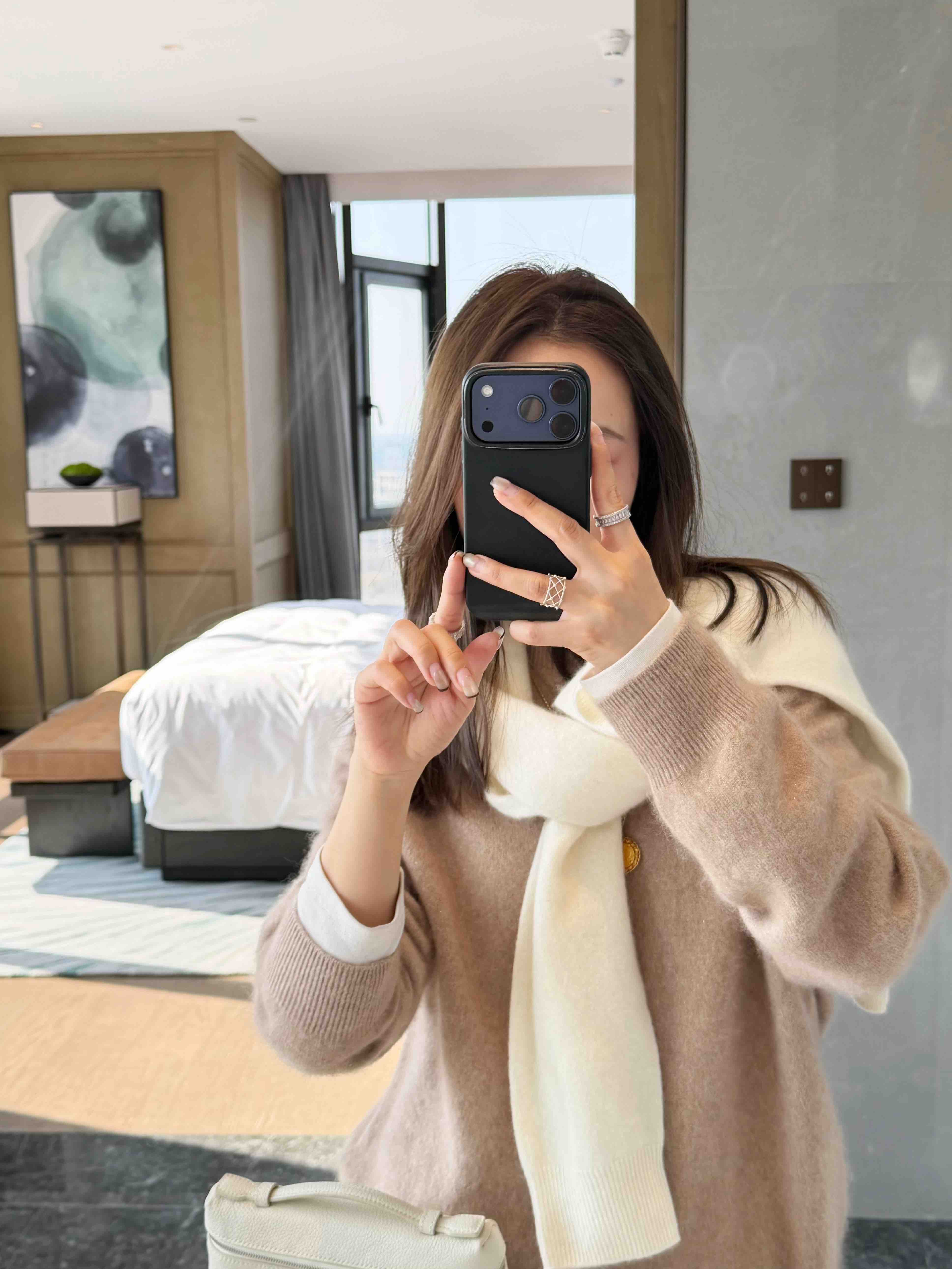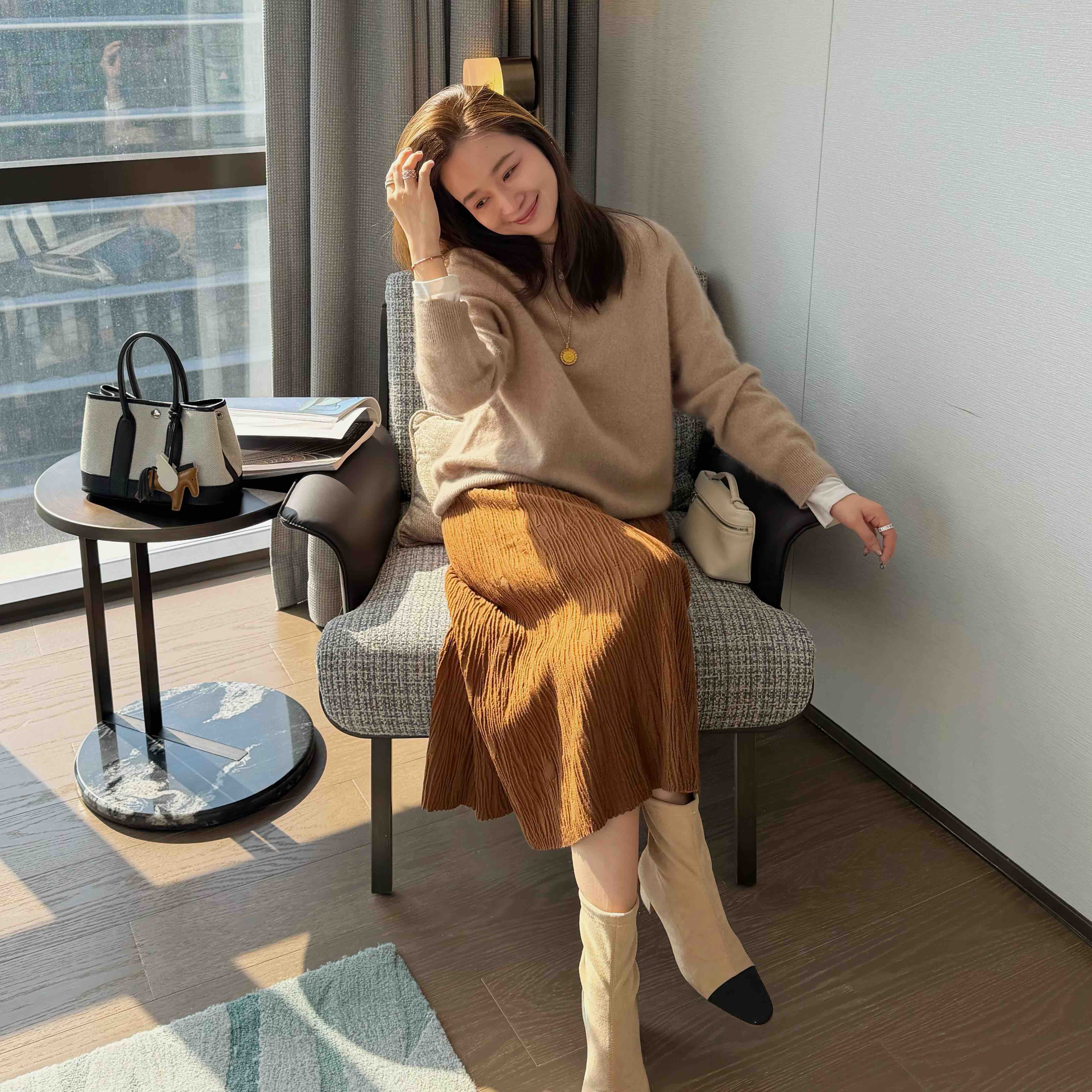 面料 85%羊毛 7%羊绒 4%真丝 4%聚酯纤维